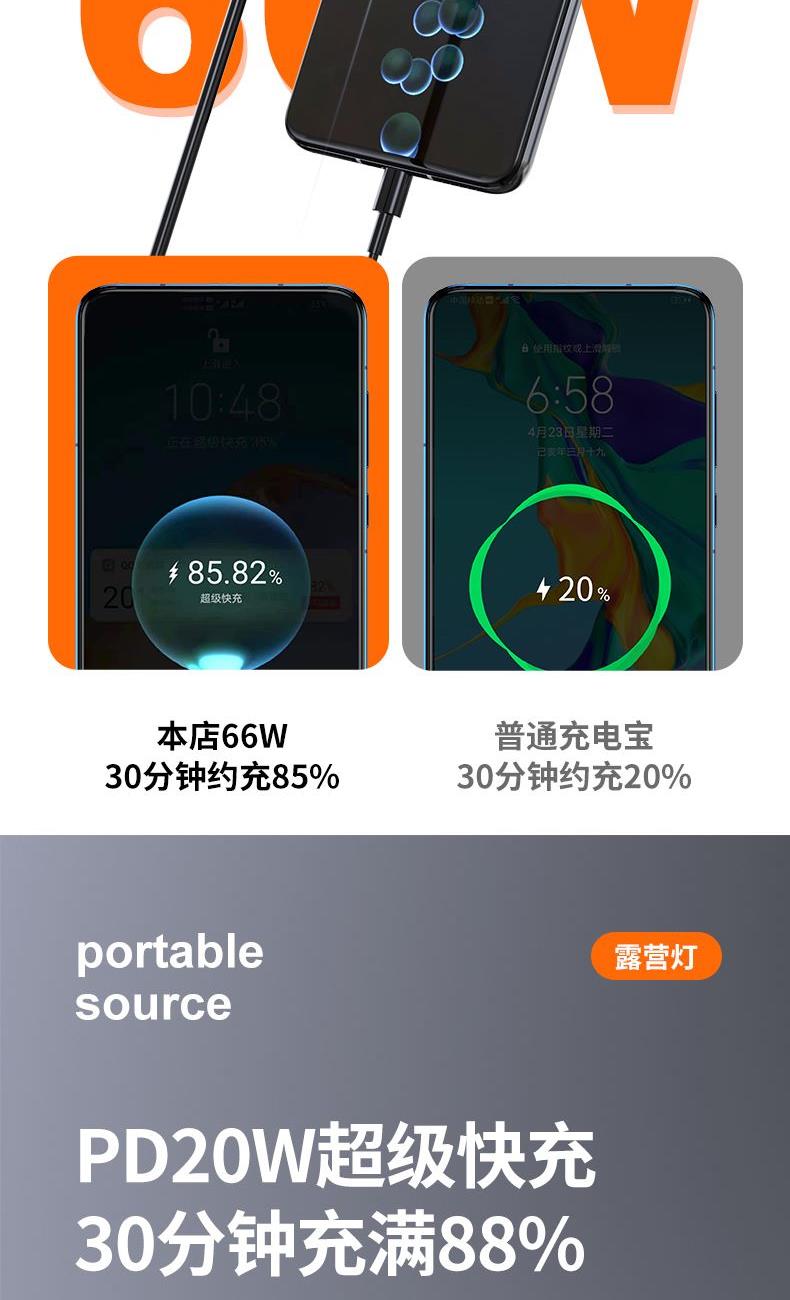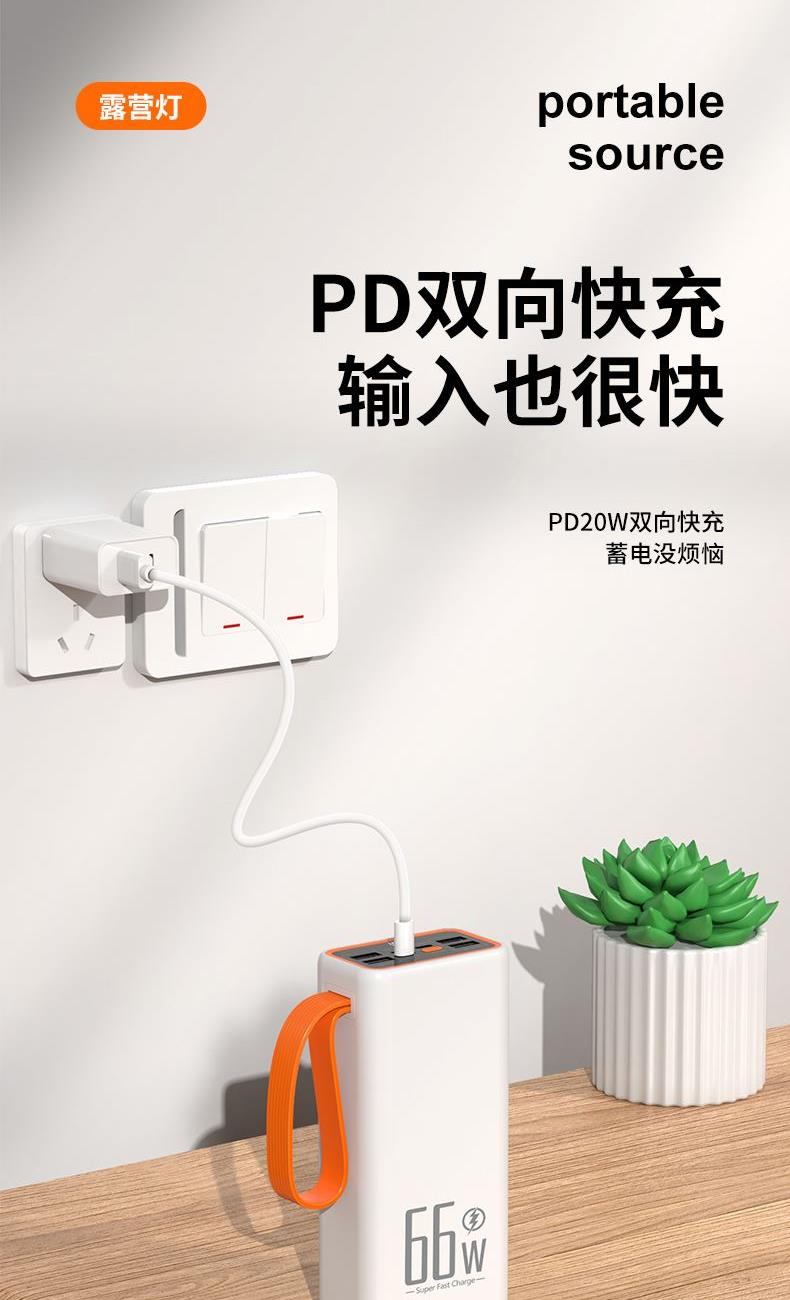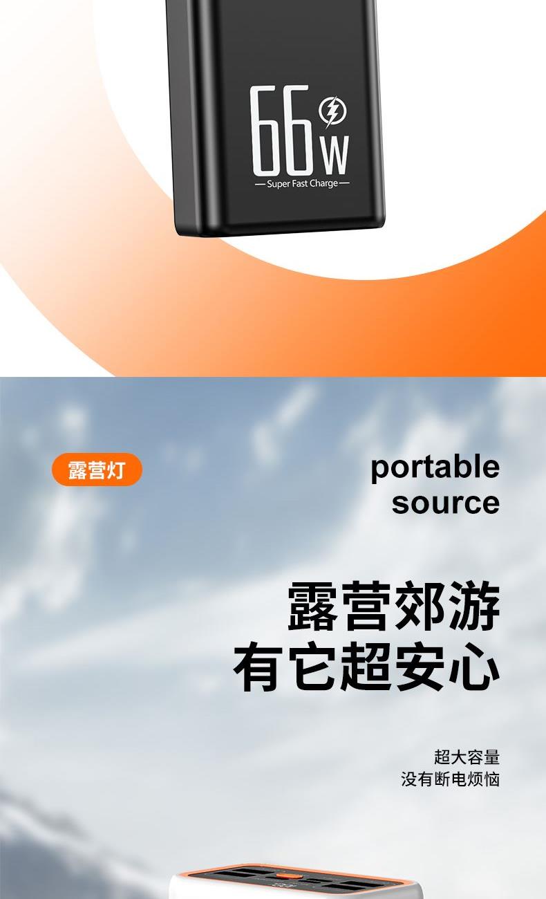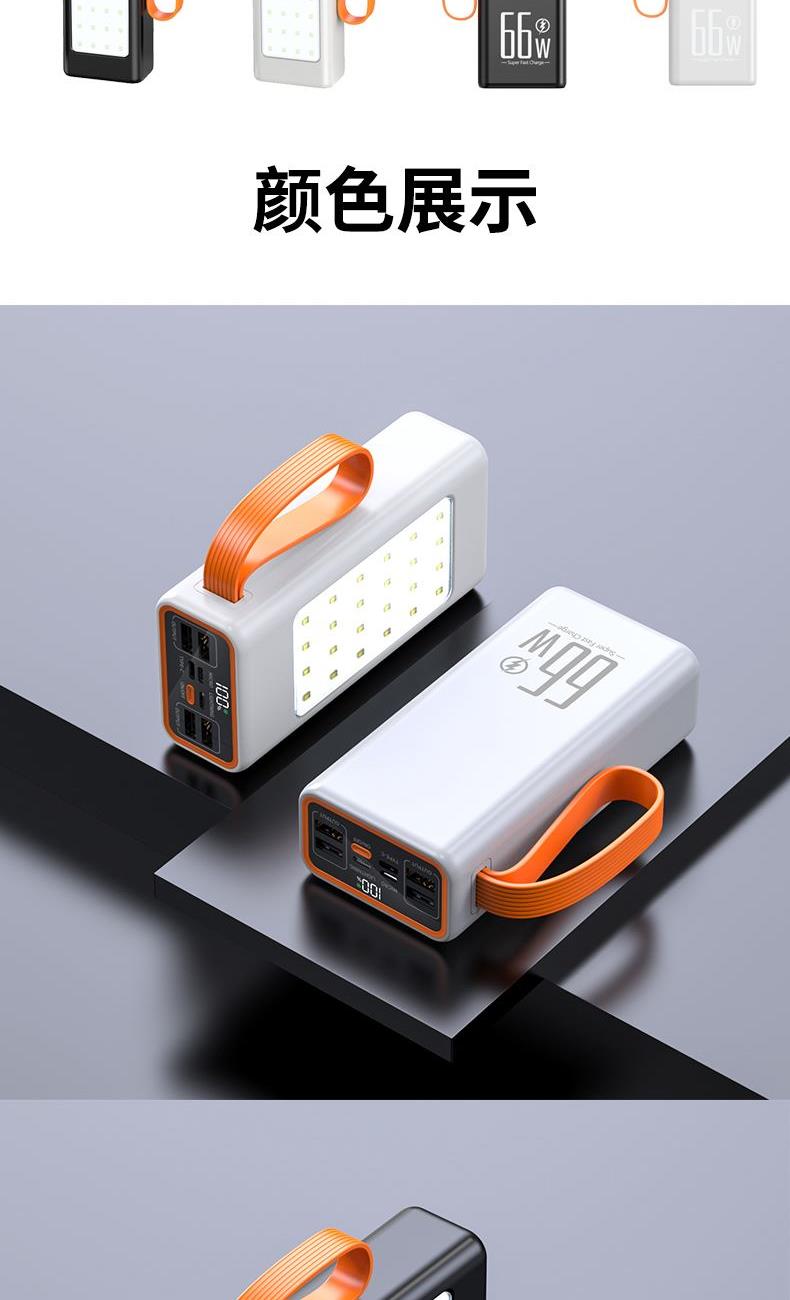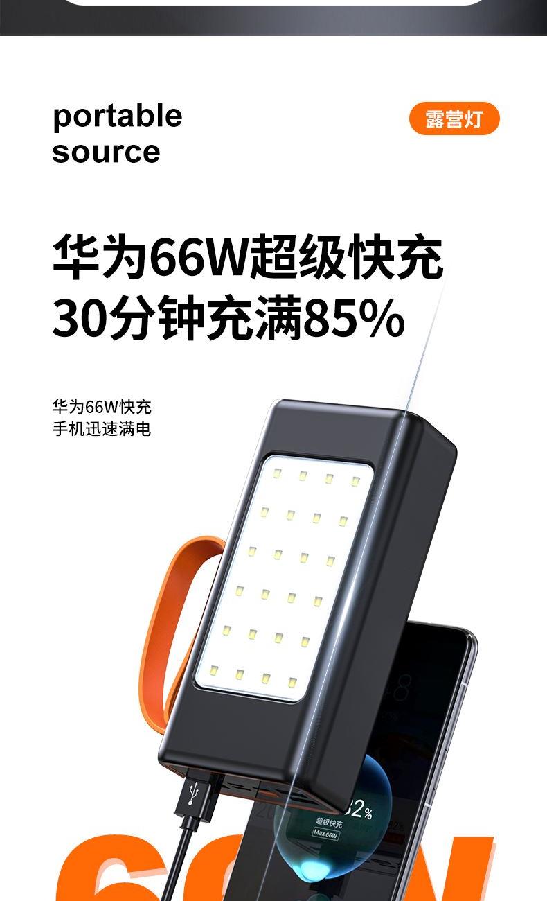 聪鲸3万毫安大容量66W超级快充露营灯移动电源653