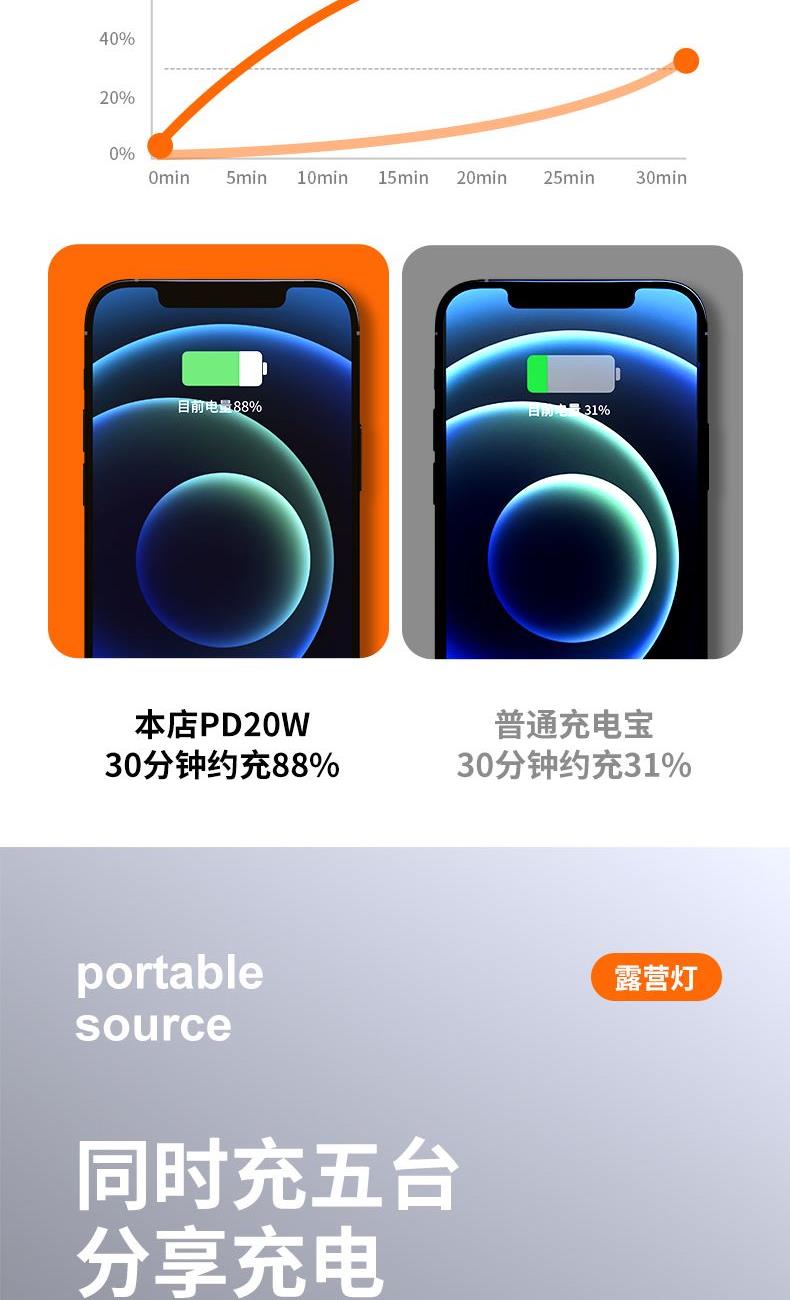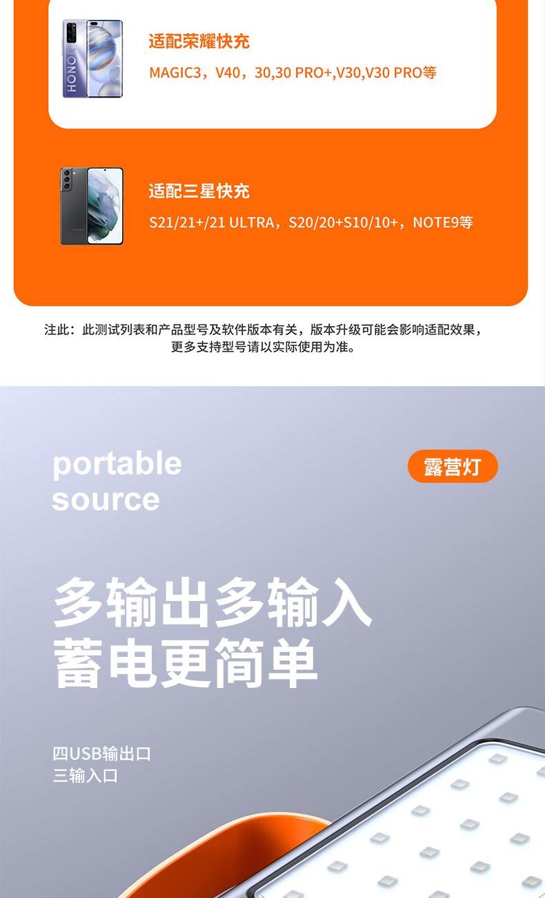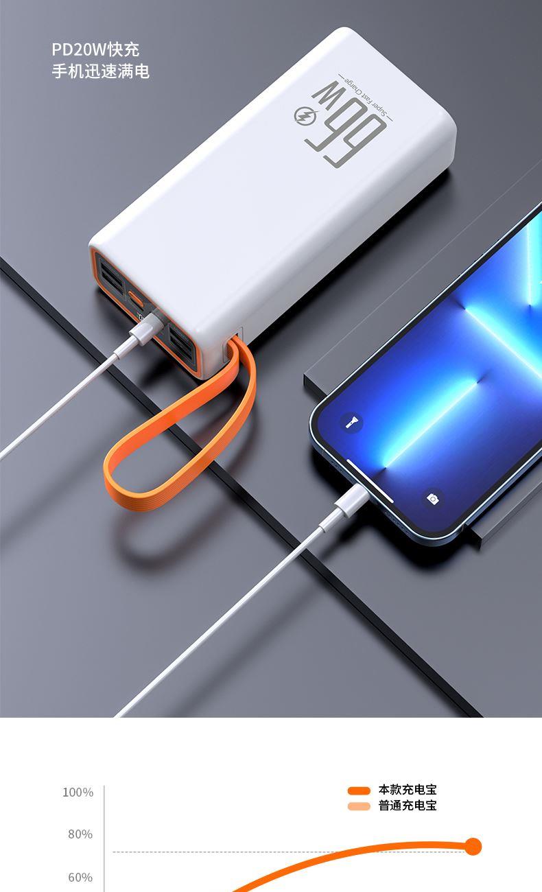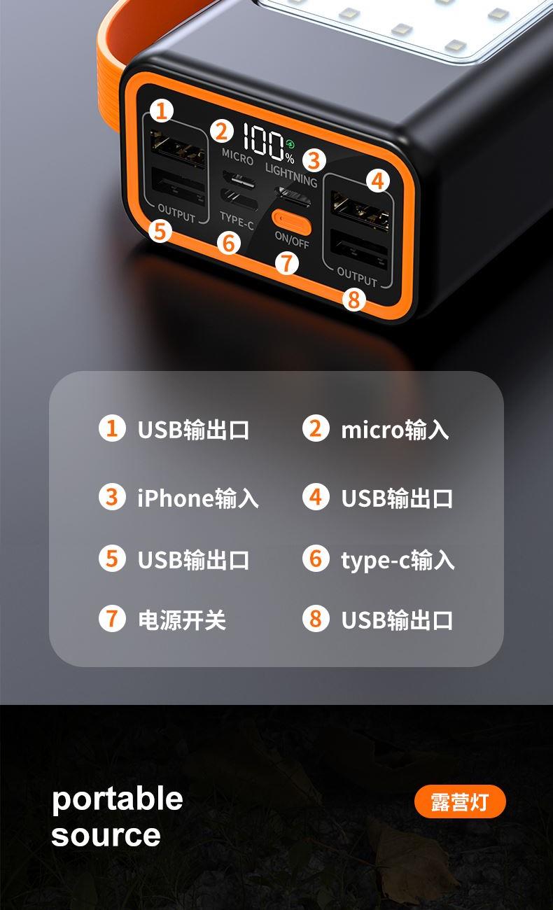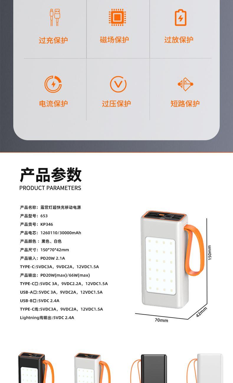 聪鲸3万毫安大容量66W超级快充露营灯移动电源653
