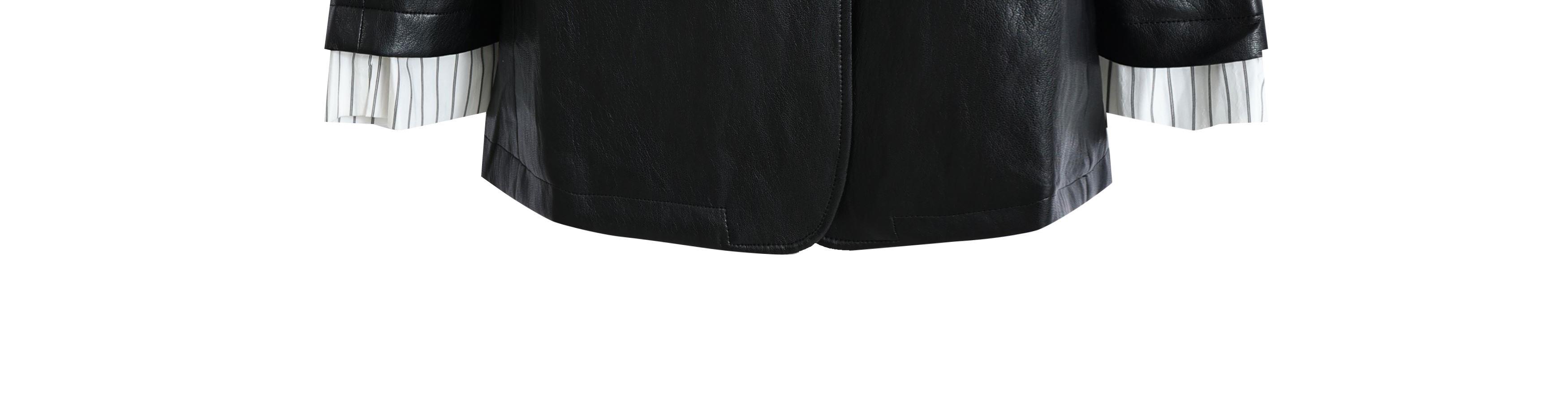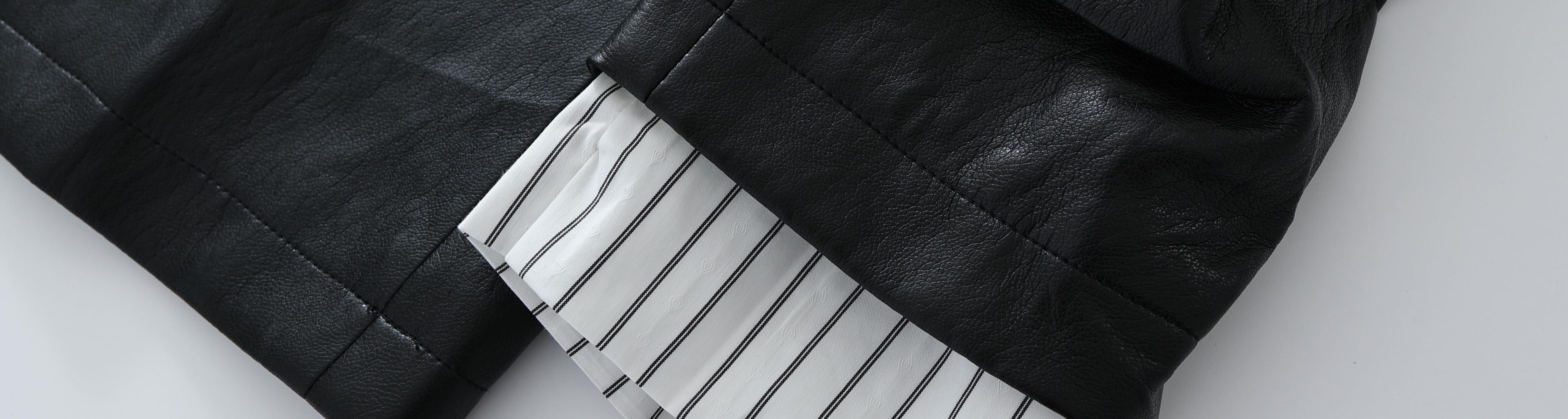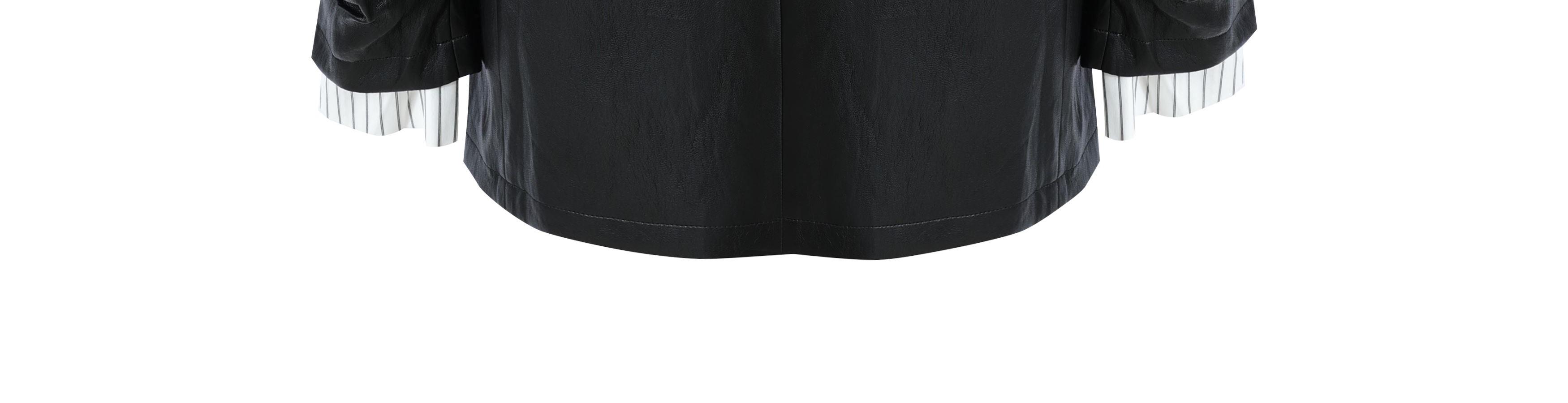 柔滑亲肤、轻柔耐用的小皮衣,袖口衬衫面料设计时尚显眼。