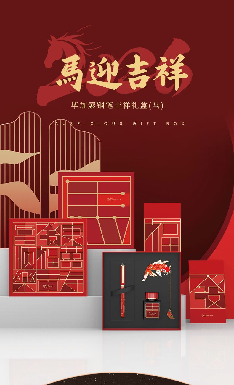 毕加索PS-908吉祥礼盒(马)马年中国红签字笔成人新年