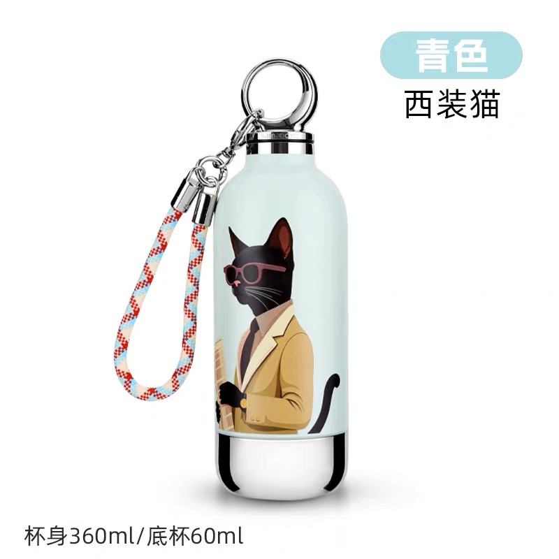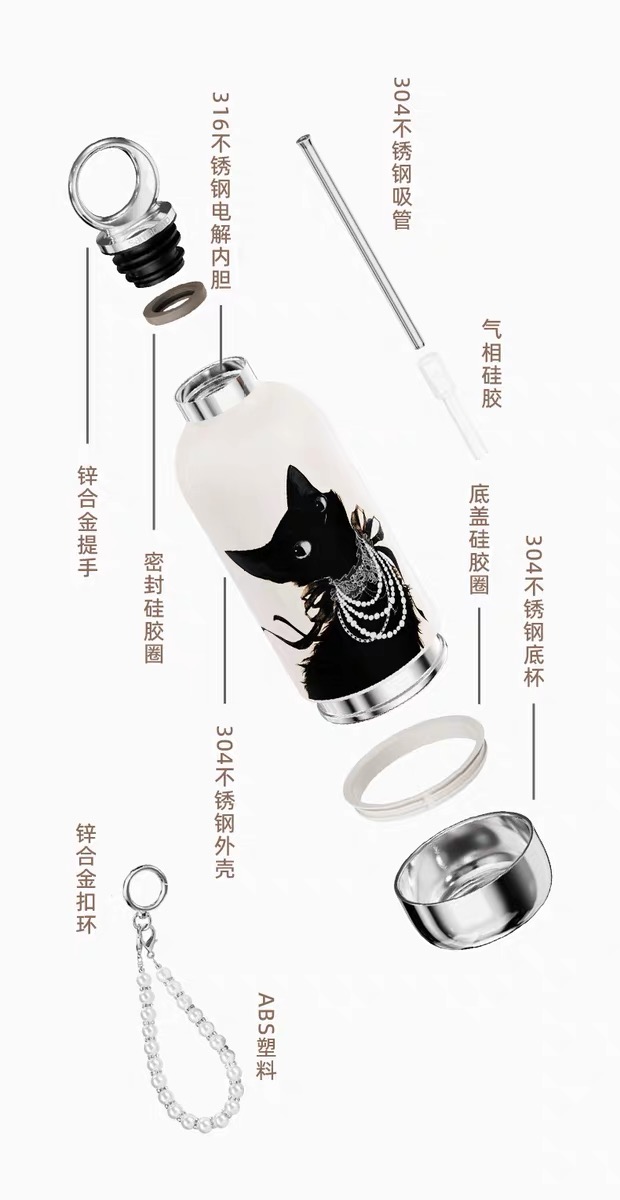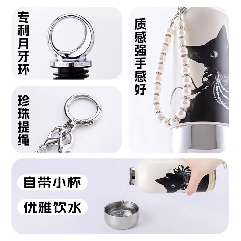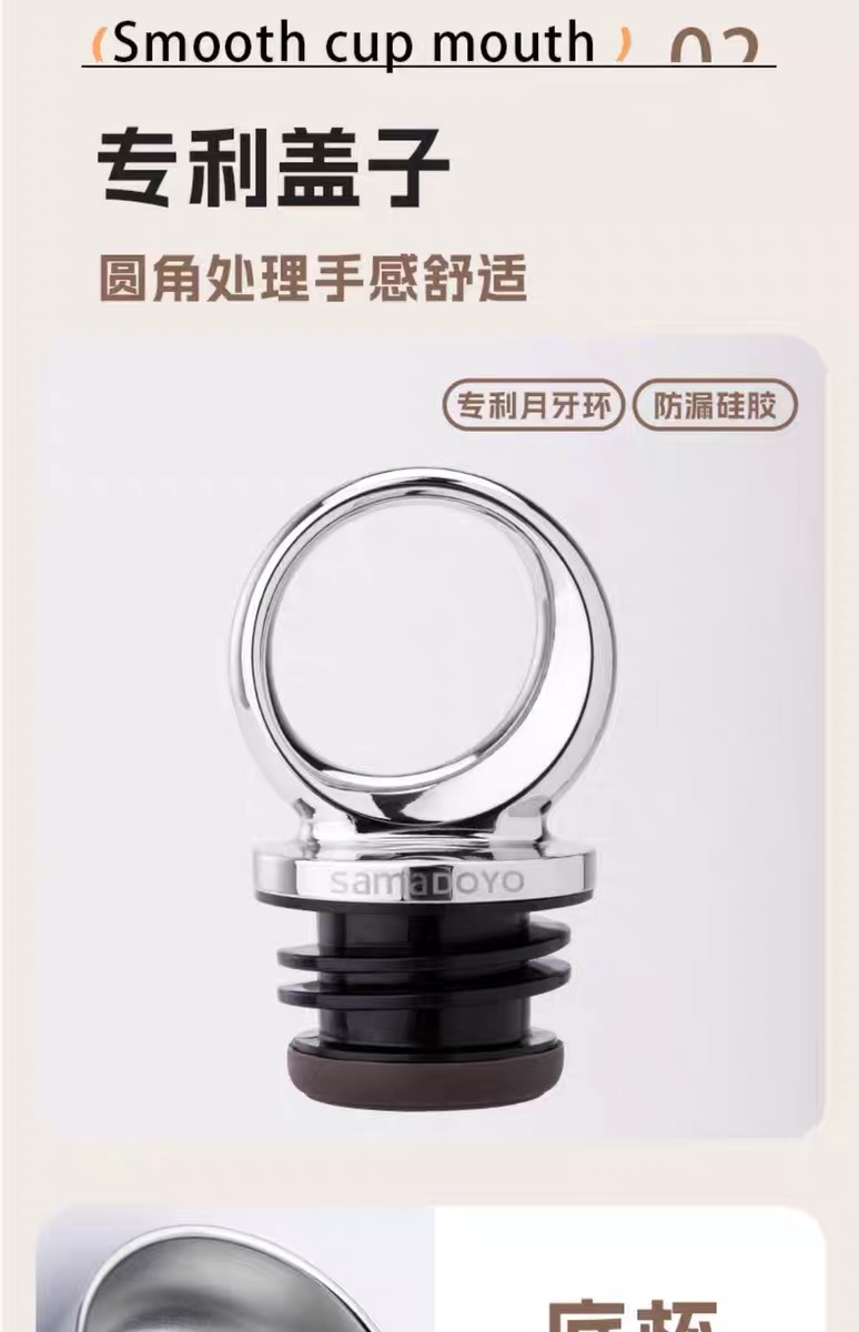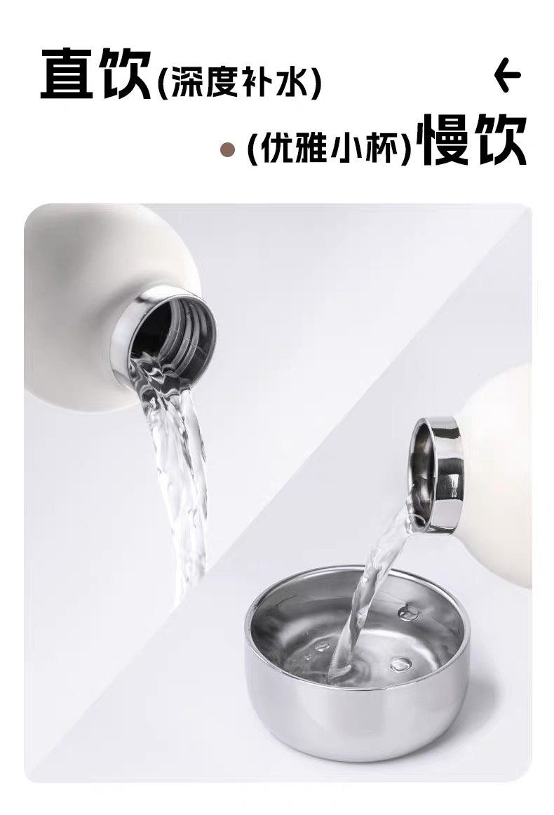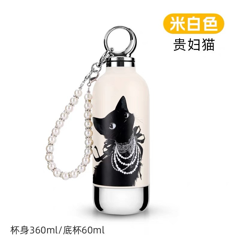 CY01潮饮杯 杯身360mL,底杯60mL 六层锁温,长效保温,保冷也保热 三色可选 自带底杯 弹出吸管 专.利月牙圆环杯盖 316不锈钢电解内胆 时尚手绳