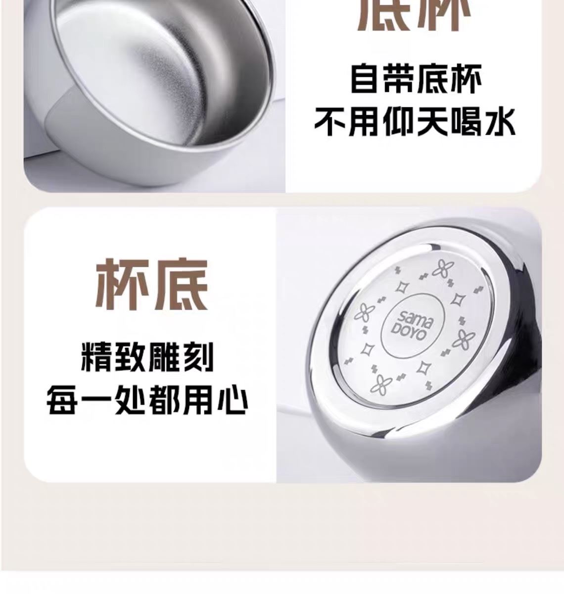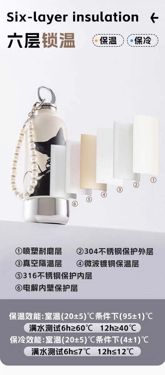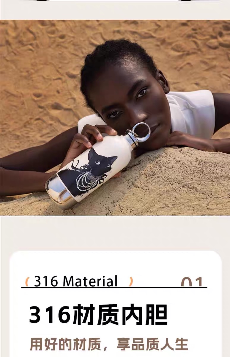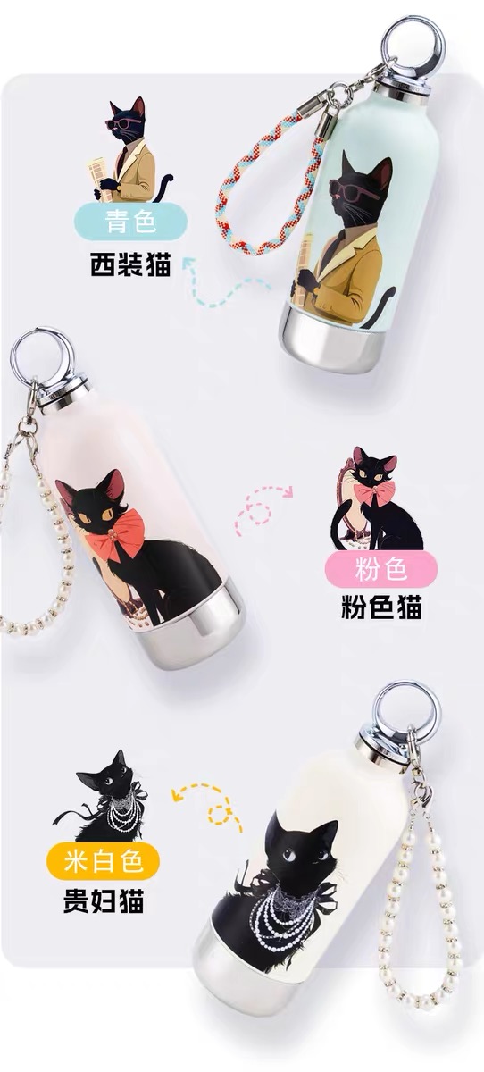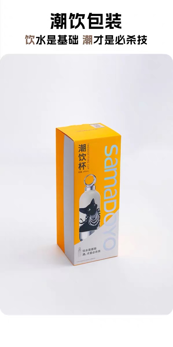 CY01潮饮杯 杯身360mL,底杯60mL 六层锁温,长效保温,保冷也保热 三色可选 自带底杯 弹出吸管 专.利月牙圆环杯盖 316不锈钢电解内胆 时尚手绳