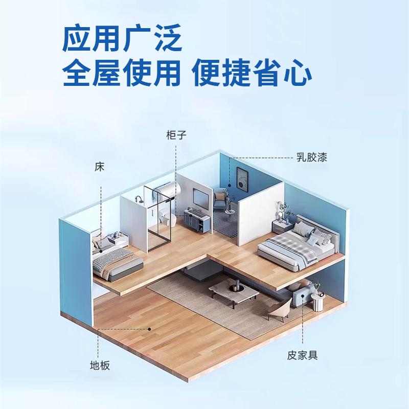 产品特点:高达96.55%甲醛去除率,均为天然植物提取物及高分子材料。直接喷涂在各种污染源表面,去除效果明显;适用于各种板材、地毯、橱柜、墙纸、布、窗帘、隔音板、人造皮革、家具等各种装修装饰材料