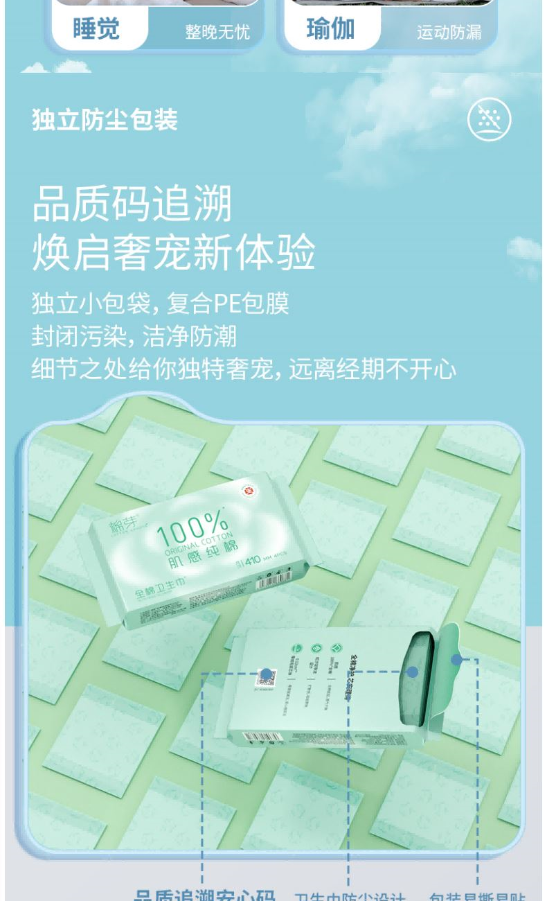 棉芽MY065全棉卫生巾姨妈巾纯棉日夜干爽透气180mm