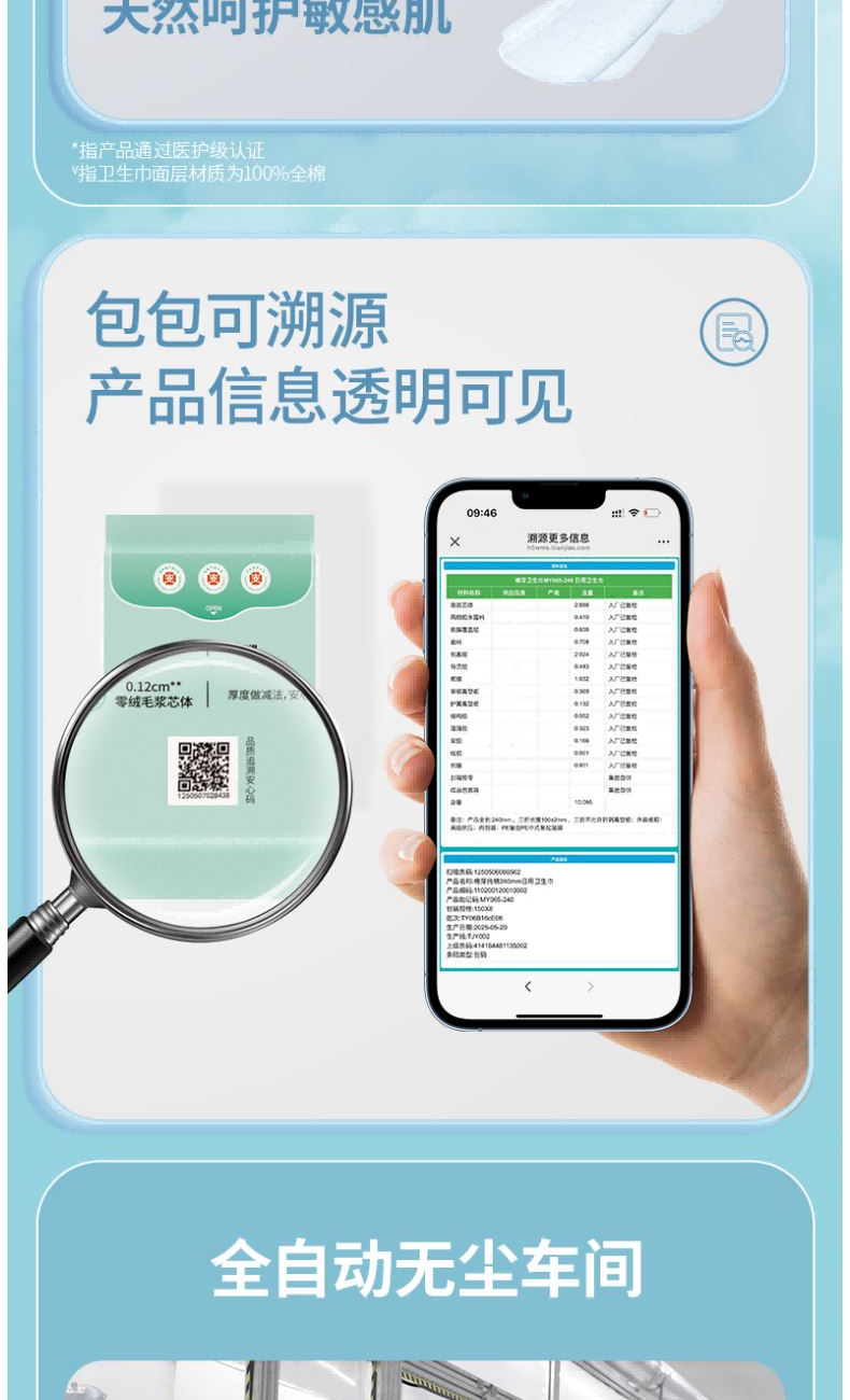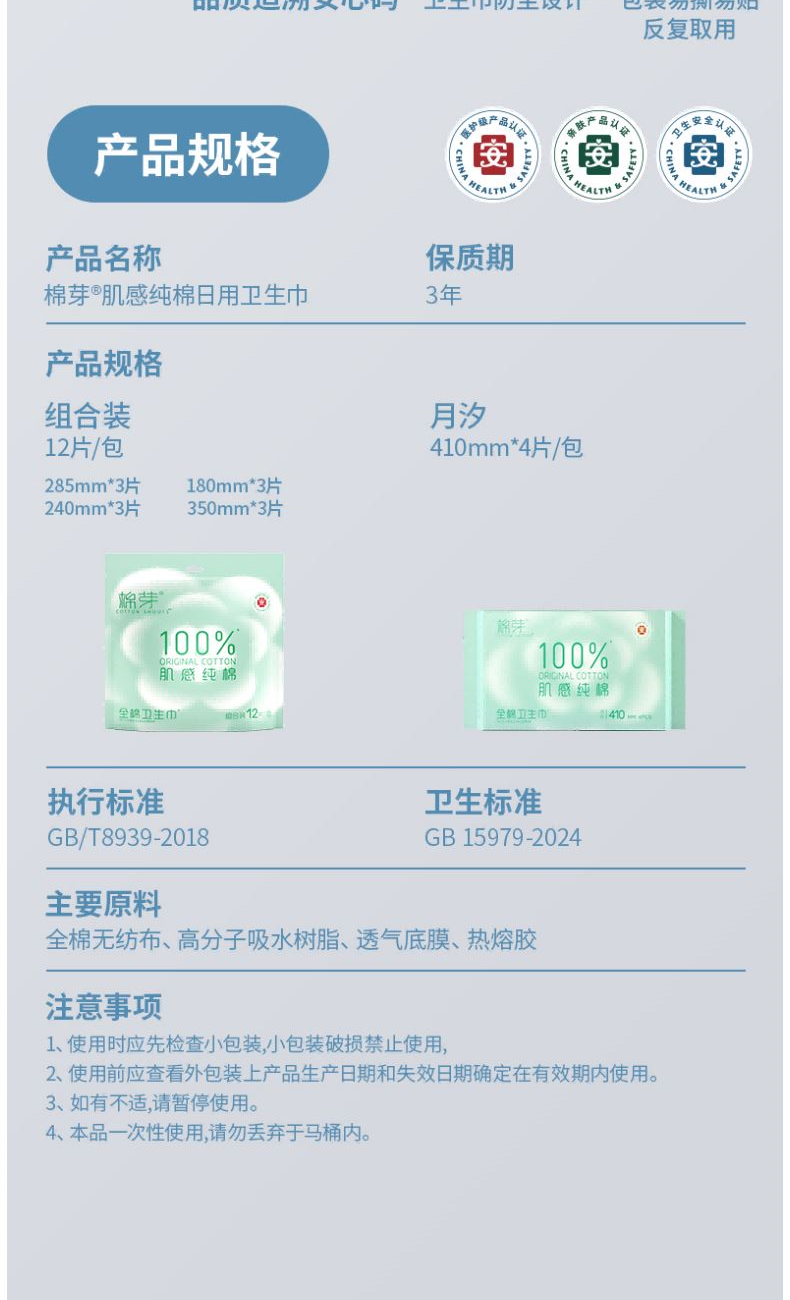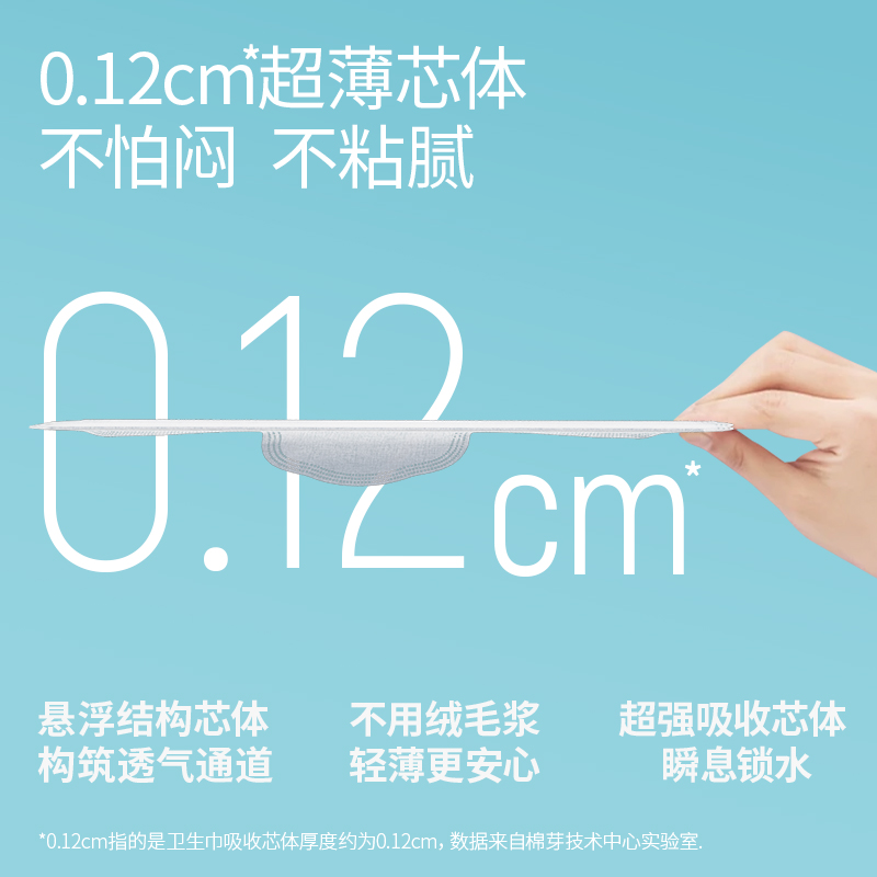 净 含 量:12片/包*1包 材质:全棉无纺布、高分子吸水树脂、透气底膜、热熔胶 核心利益点: 不闷 超薄芯体 不漏 瞬吸锁水 不刺激 纯棉