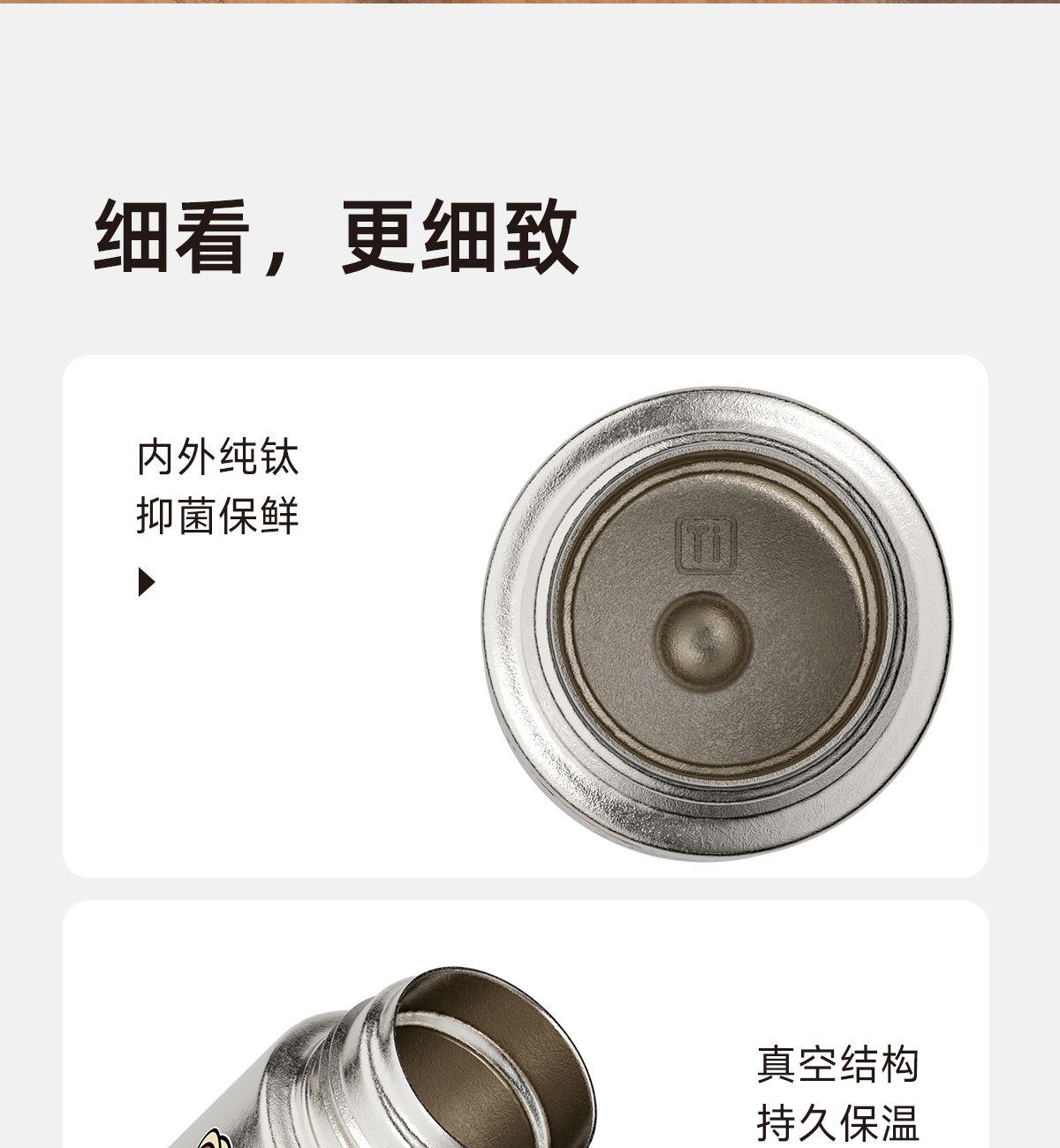 容量:150ml | 净重:114g | 口径:35mm 材质:钛TA1(内胆) 钛TA1(外壳) PP(杯盖) 产品尺寸:54mm*54mm*148mm 彩盒尺寸:215mm*135mm*110mm 执行标准:QB/T 5612-2021《钛杯》 双层纯钛,长效保温,冷热皆宜。mini口袋保温杯,本身小巧轻盈,出行无负担。