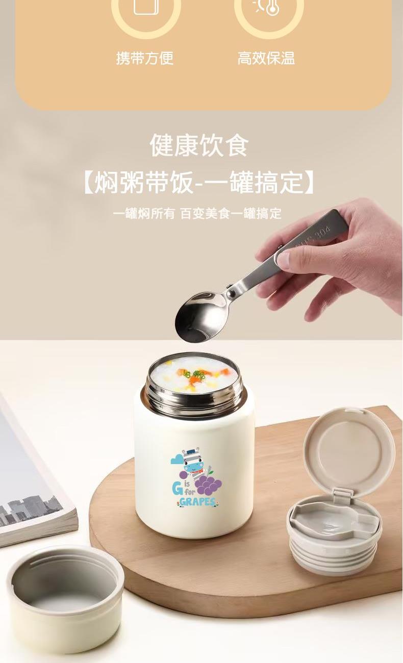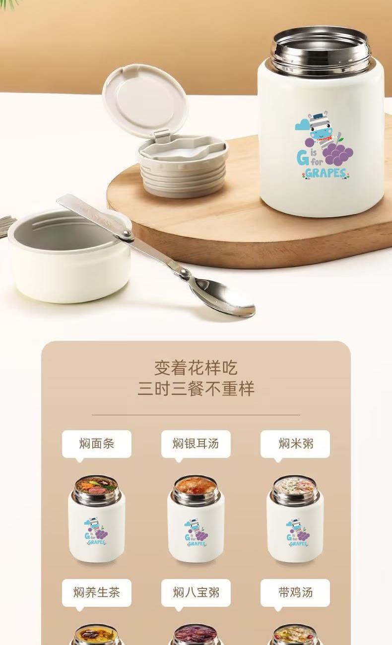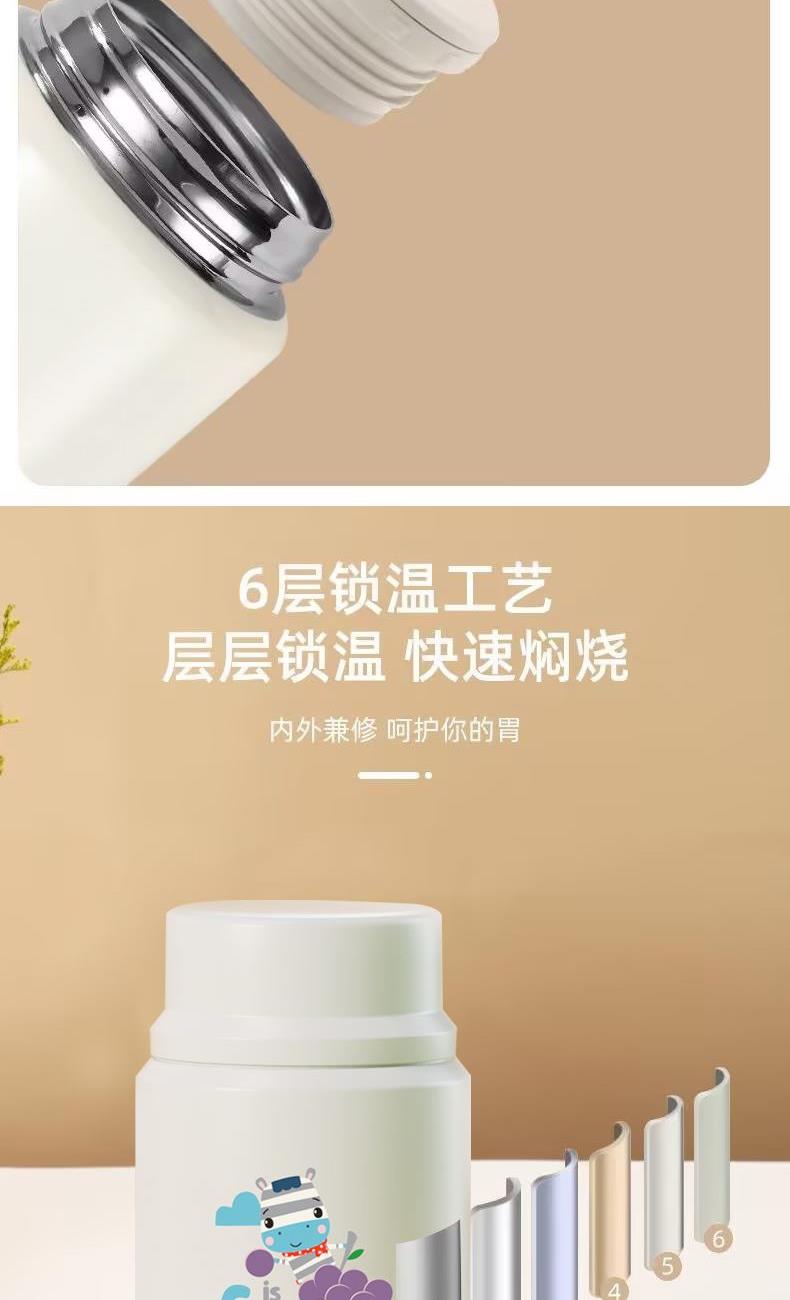 容 量 :500ml 材 质 :316不锈钢+304不锈 钢+食品级pp 颜 色 :元气白 包 装 尺 寸:110*110*170mm 装 箱 数 :30/pcs 304不锈钢材质,饮水更放心 采用食品级pp+食品级硅胶,干净卫生 多用使用场景,室内户外郊游使用