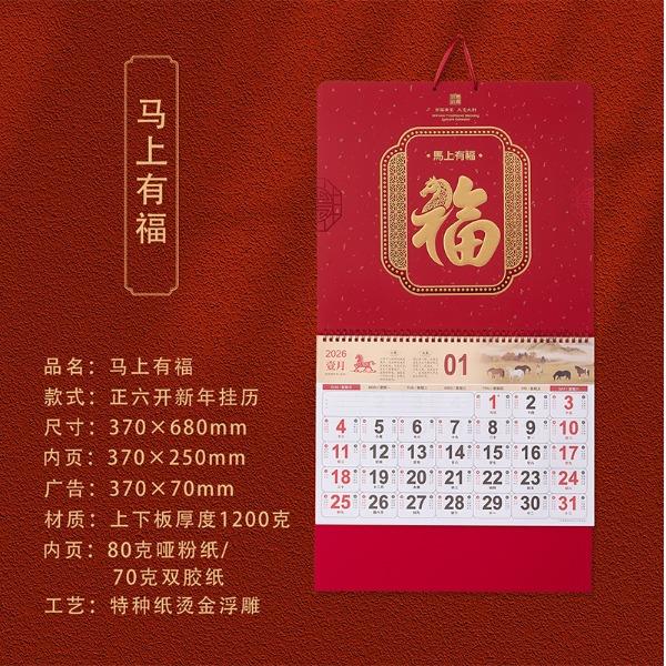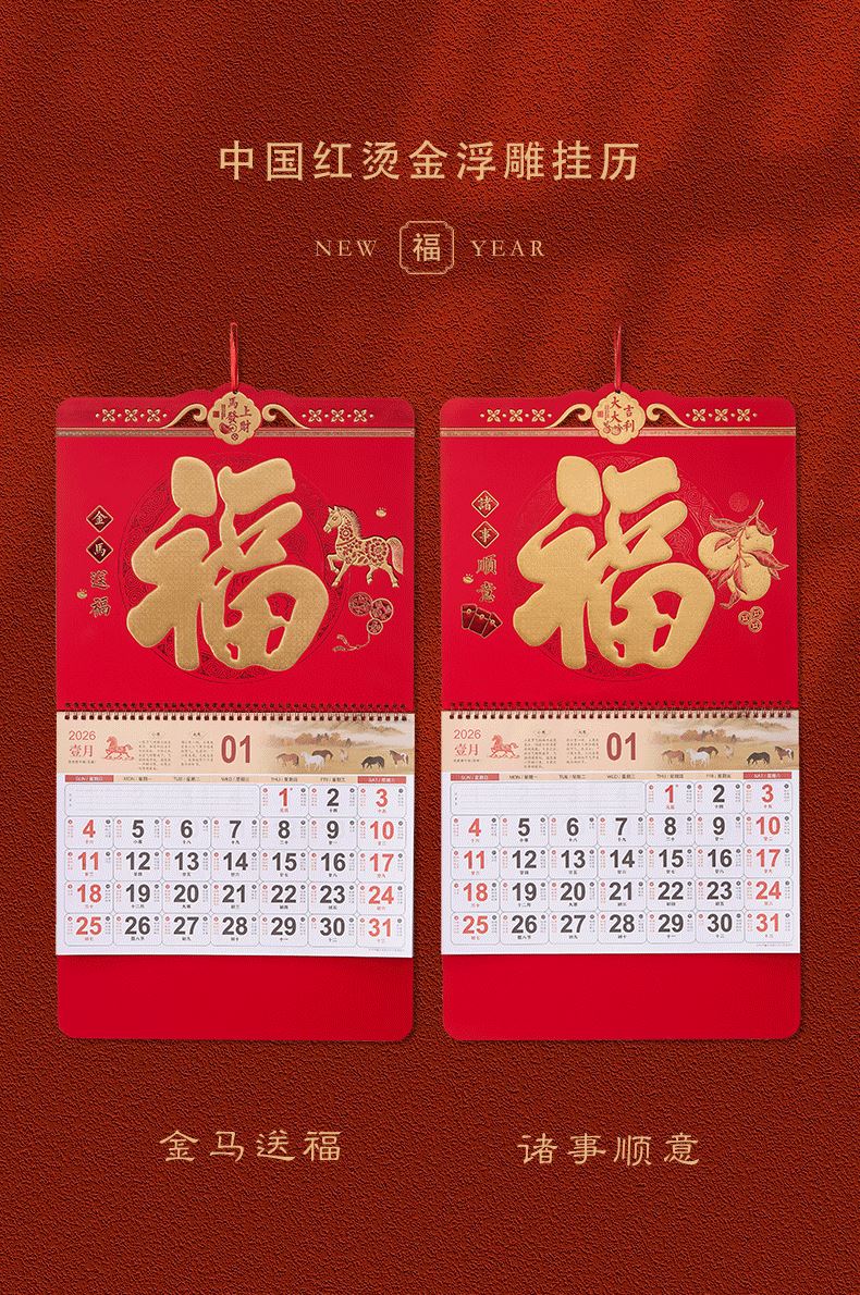 一辈子:2026马年新款福牌挂历浮雕吊牌撕历月历烫金