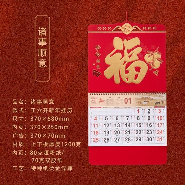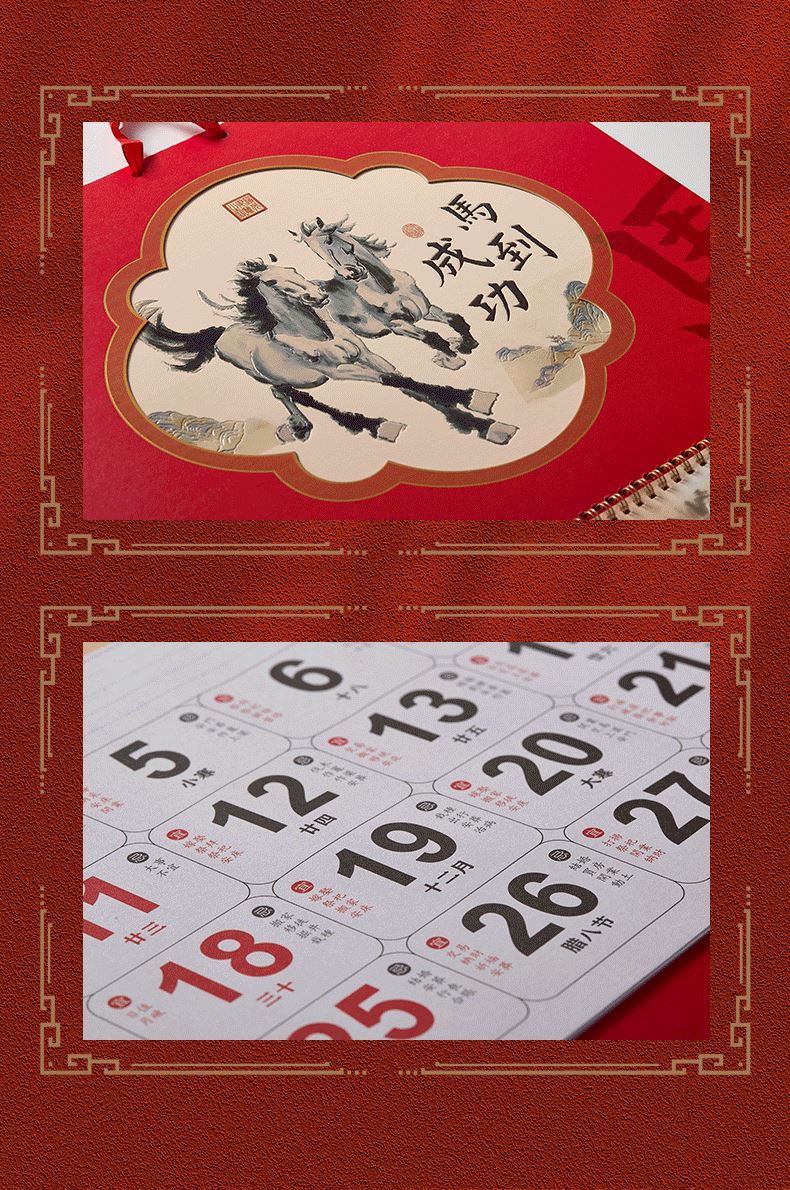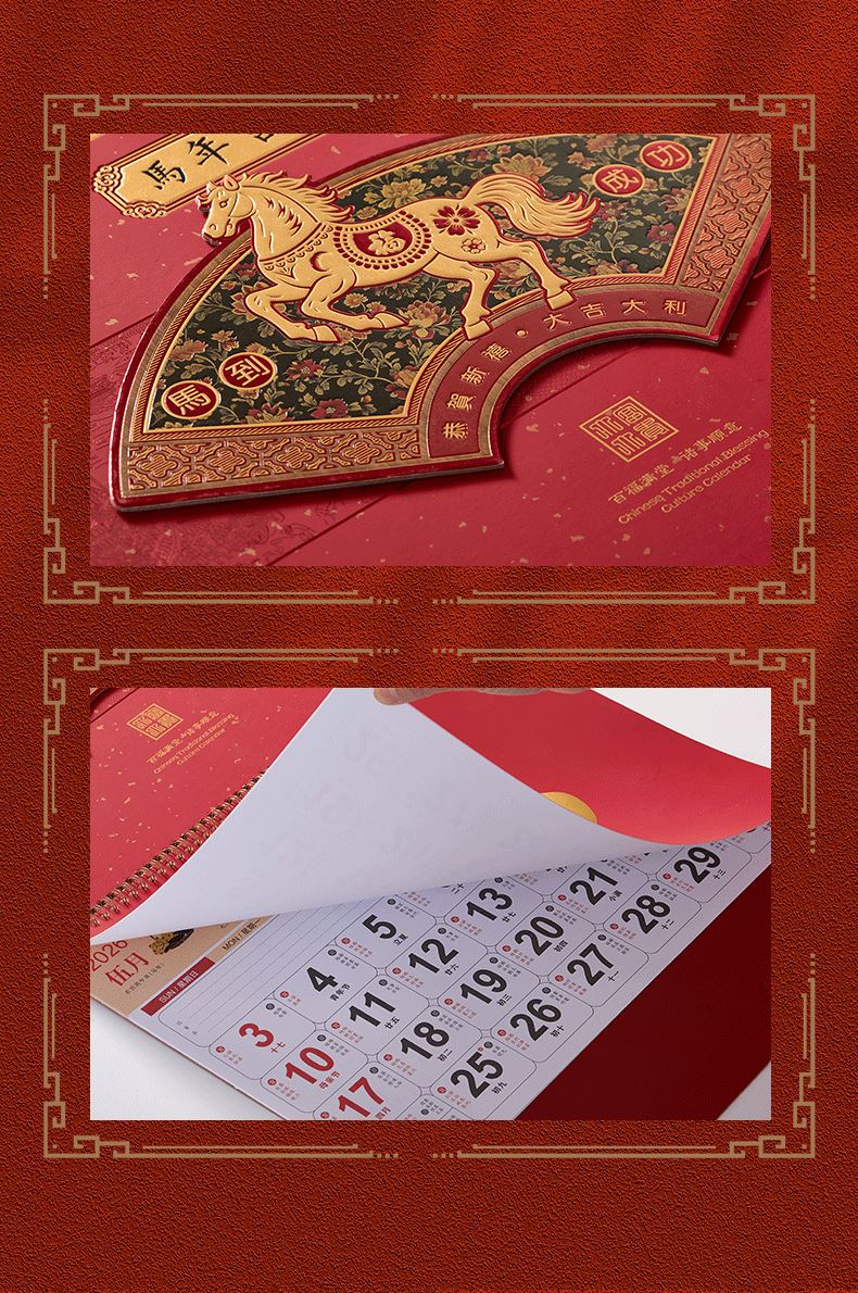 1.注:商城报价对应首张主图款式! 其他套装参考细节图,费用另计! 2. 咨询下单请备注好产品信息! 3.首图款式产品明细:金马送福烫金挂历