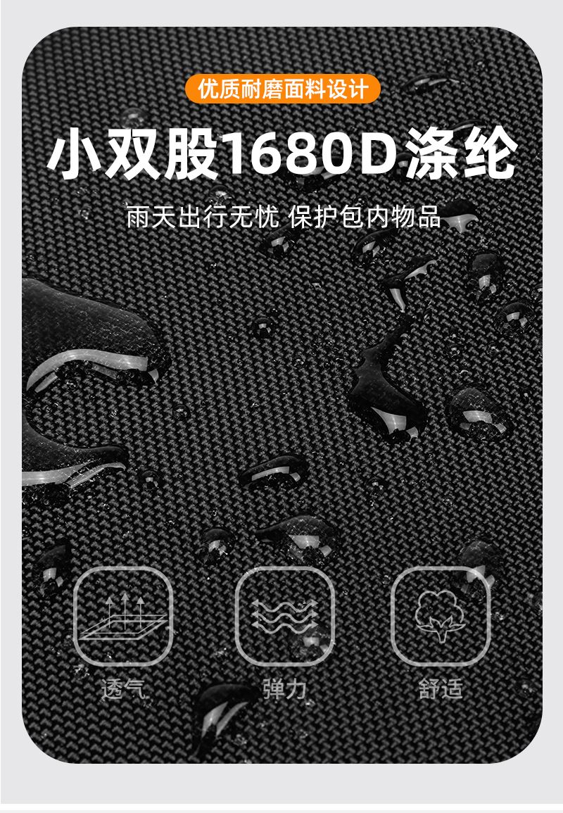 产品型号:HYX0665 产品颜色:黑色 产品材质:小双股1680D涤纶 产品尺寸:45*31*15cm 产品重量:0.88kg 外包装尺寸:45*48*65mm