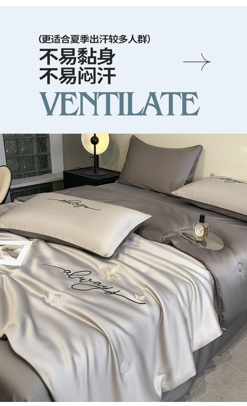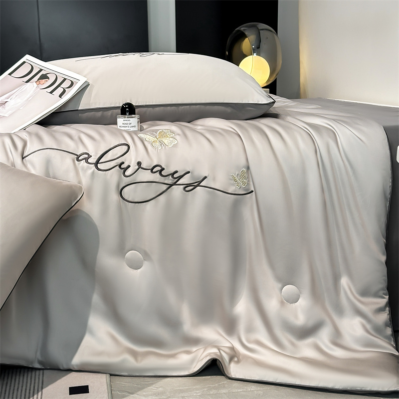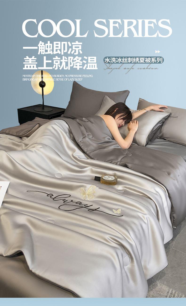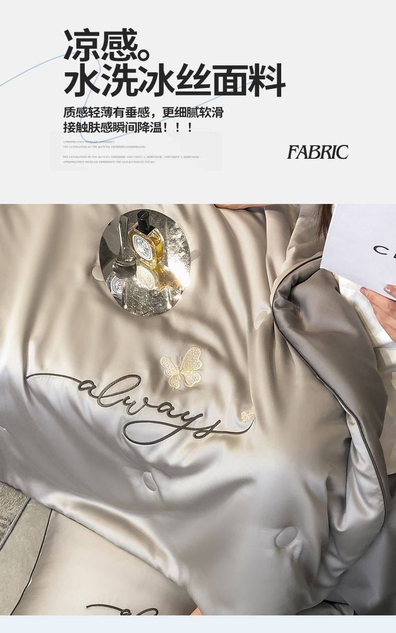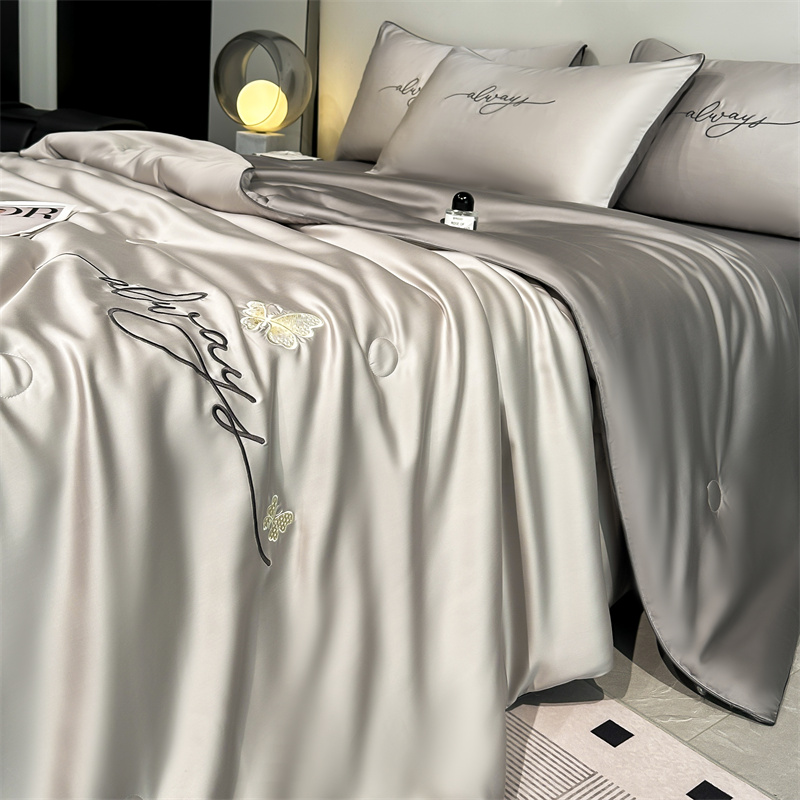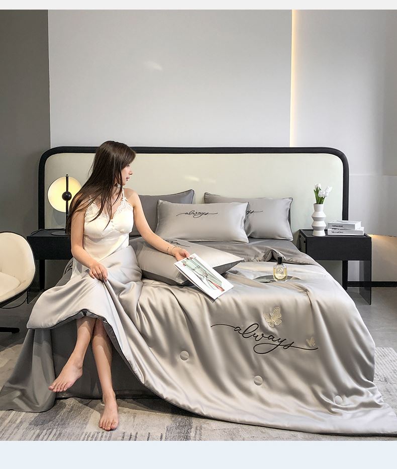百丽安娜水洗真丝刺绣凉感夏被-灰