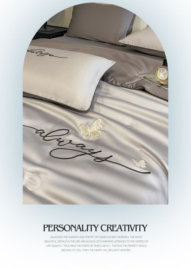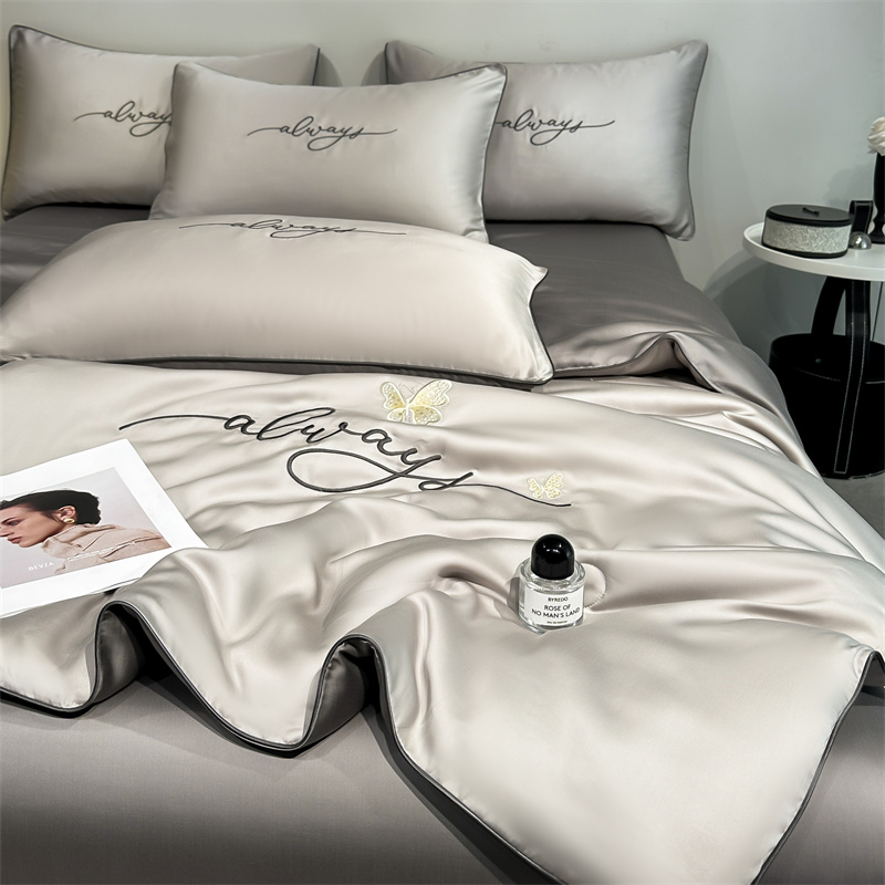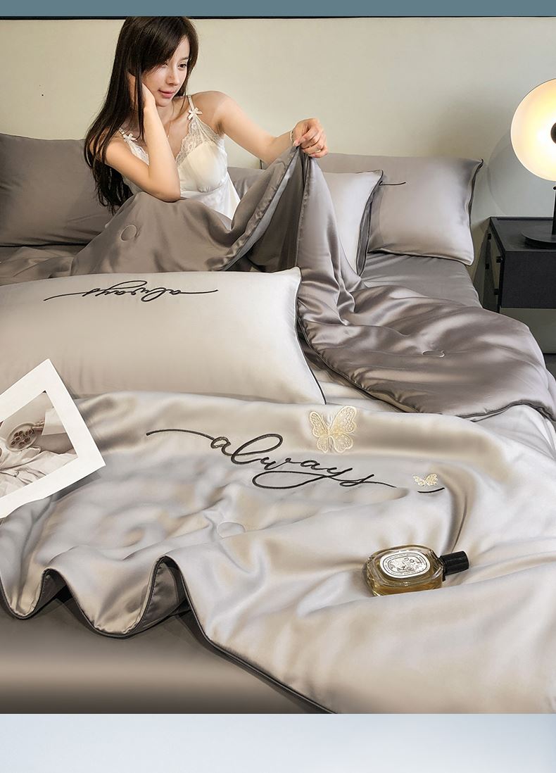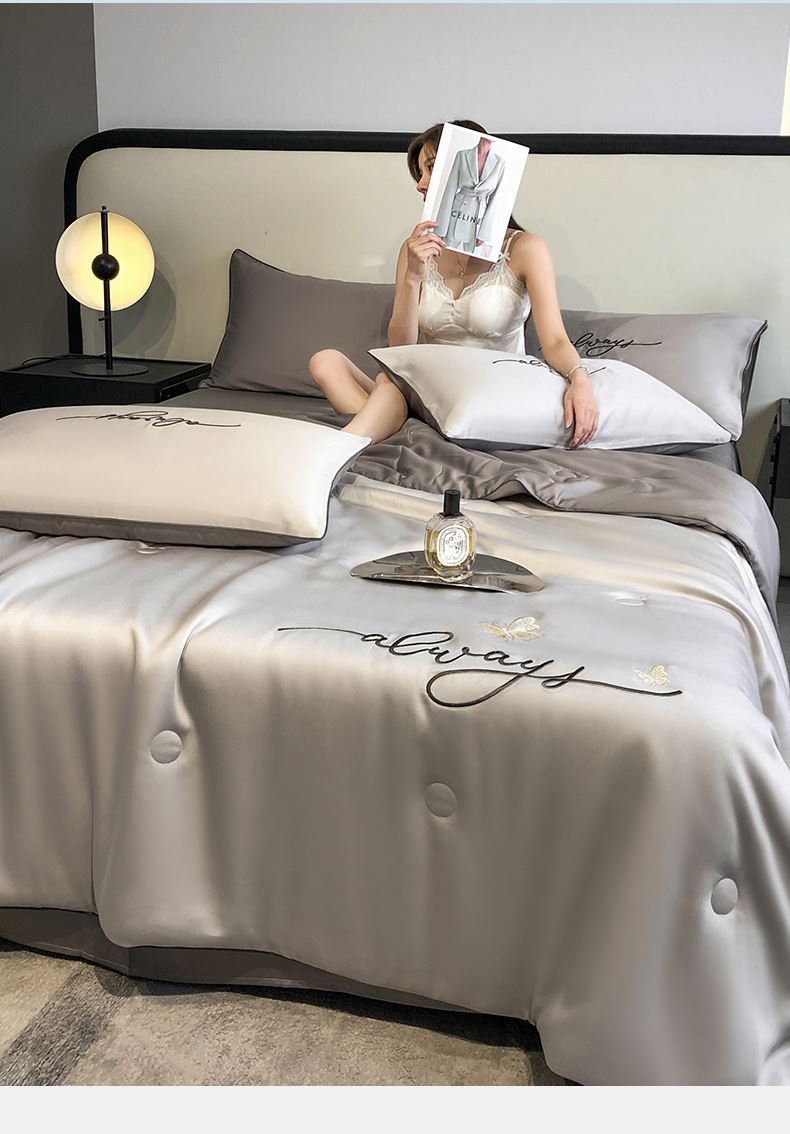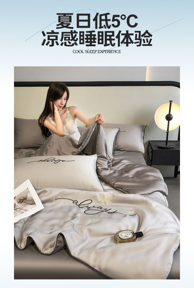 百丽安娜水洗真丝刺绣凉感夏被-灰