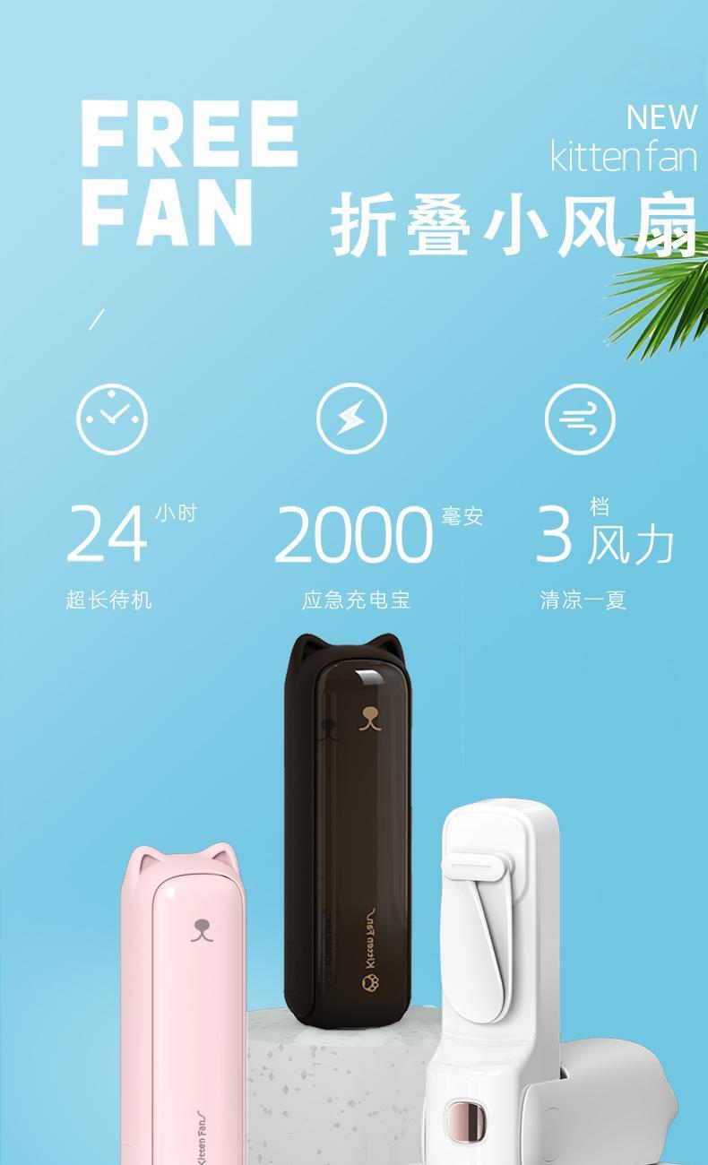 右心F1便携折叠手持风扇可爱小猫小风扇