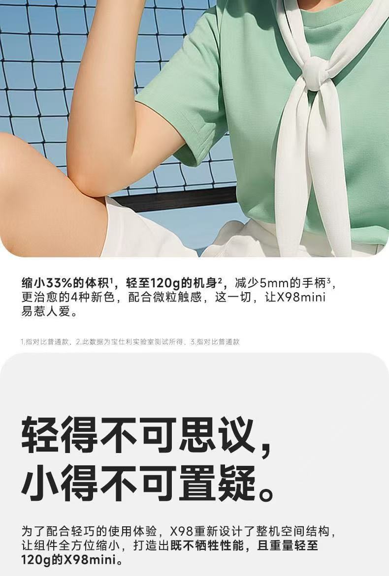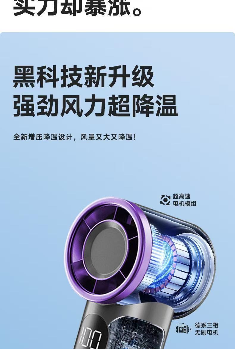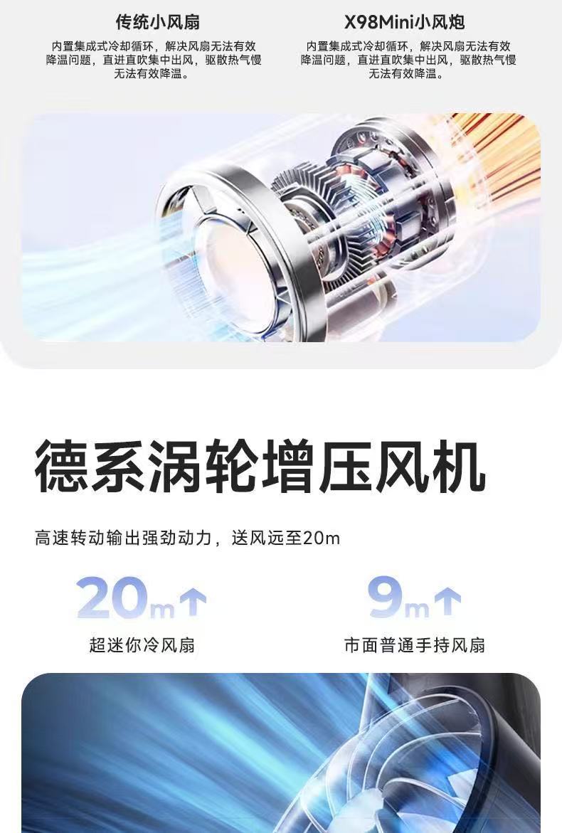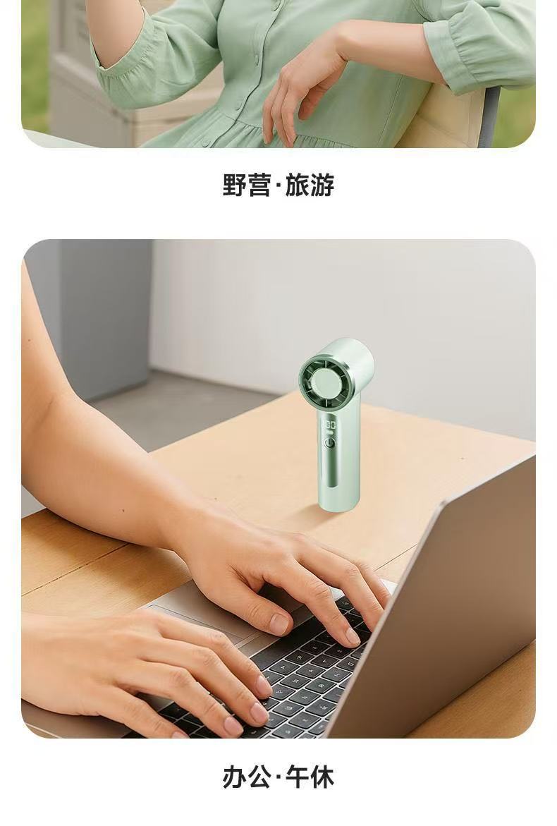 MINI高速手持小风扇X98 颜色:米色 绿色 紫色 灰色 整箱数量:100PCS 外箱:50*24*25.5CM 单个重量:114.5g 彩盒尺寸:50*50*115mm 整箱重量:15kg 尺寸:185*91*30mm 材质:ABS材质 容量:1200mAh 包装:彩盒包装 【推荐理由】: 迷你精致小巧,方便携带高速风扇 5档数显可调节高速风扇 桌面/手持/户外多种使用方法 1200毫安大容量电池待机更长