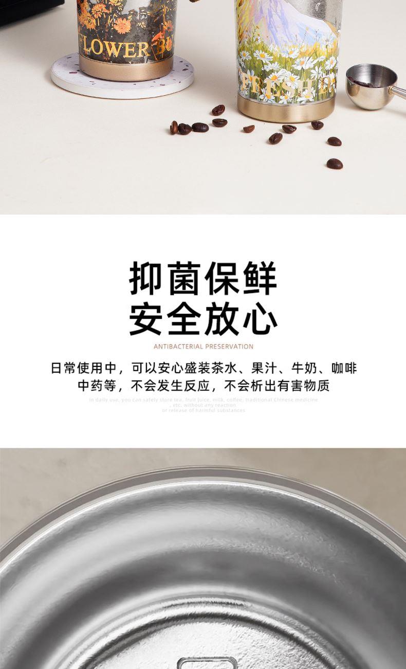 产品容量:500ml 外装尺寸:24.5*10.5*16cm 颜色:铃兰本色、鸢尾本色、雏菊本色、雪山本色、向日葵本色、摘星楼本色