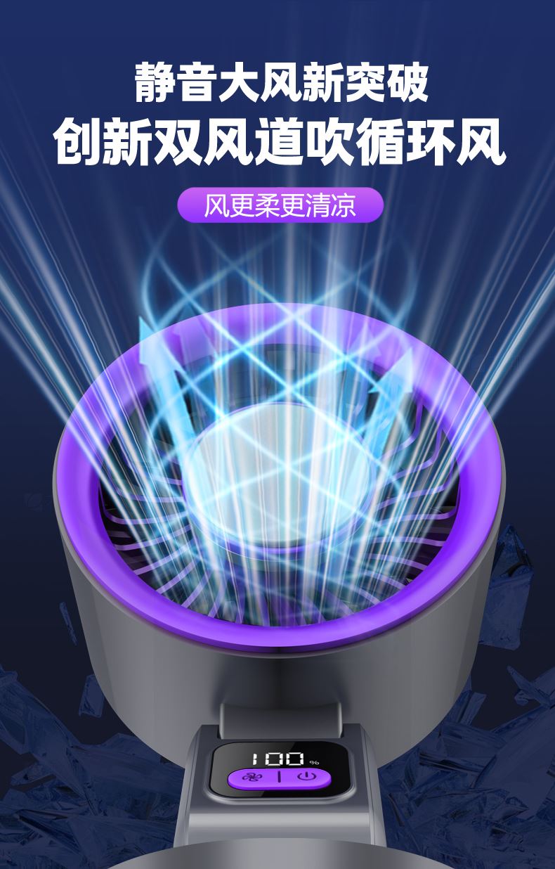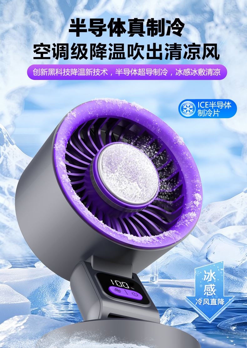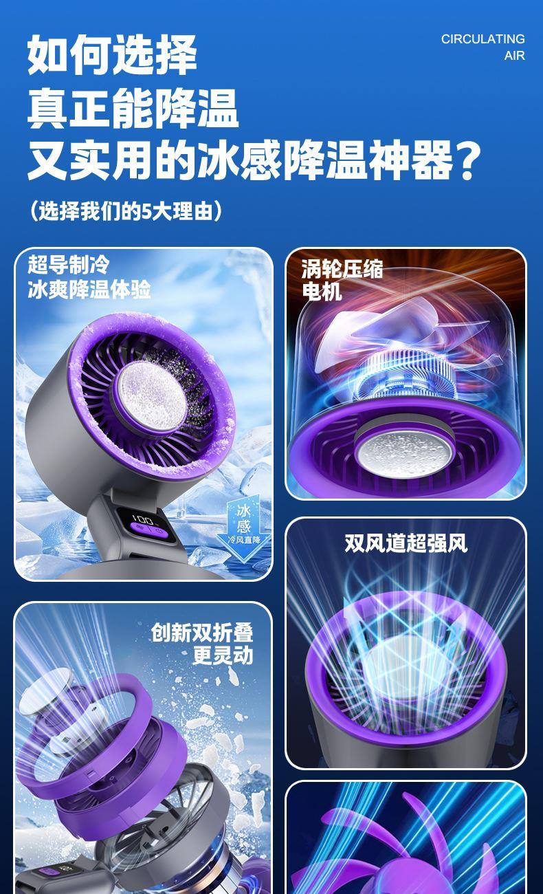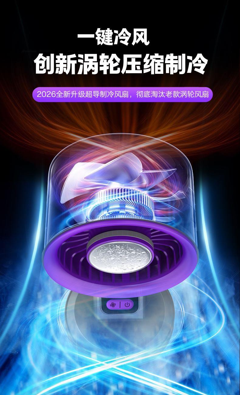 *挂立两用,创新双折叠 *升级双风道高速涡轮大风 *制冷款带半导体制冷片 *3600毫安电池长续航