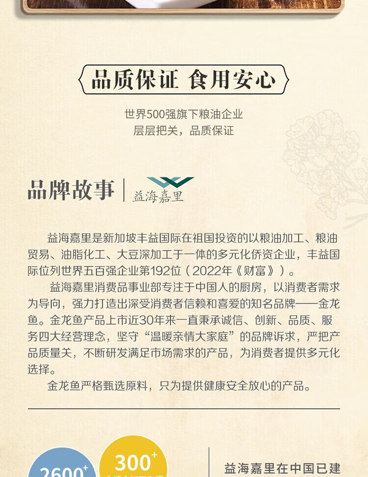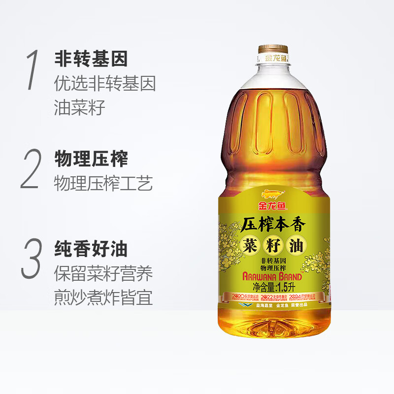 净含量:3L+2.5kg 推荐理由: - 产地与品质:源自东北优质产区,米粒饱满,蒸煮后米香浓郁,口感软糯有嚼劲,还原“经典幸福味”。 - 营养成分:富含谷维素(标识“10000”),谷维素对调节植物神经,是稻米油的核心营养卖点。 - 风味与烹饪:菜香浓郁,适合煎、炒、炸、炖等中式烹饪,能为菜肴增添醇厚的菜籽香气,且作为金龙鱼奥运品质产品,品质有保障。