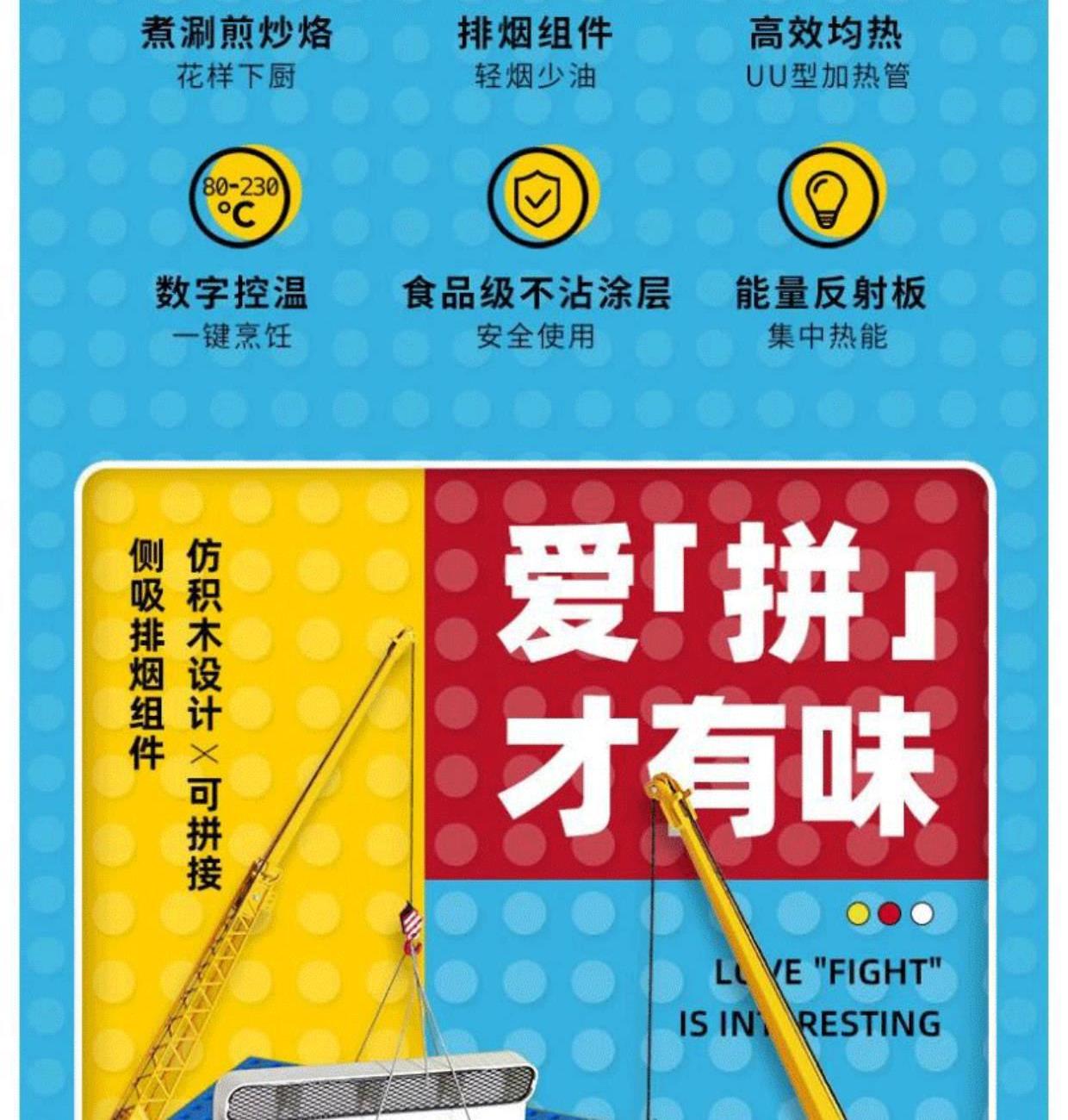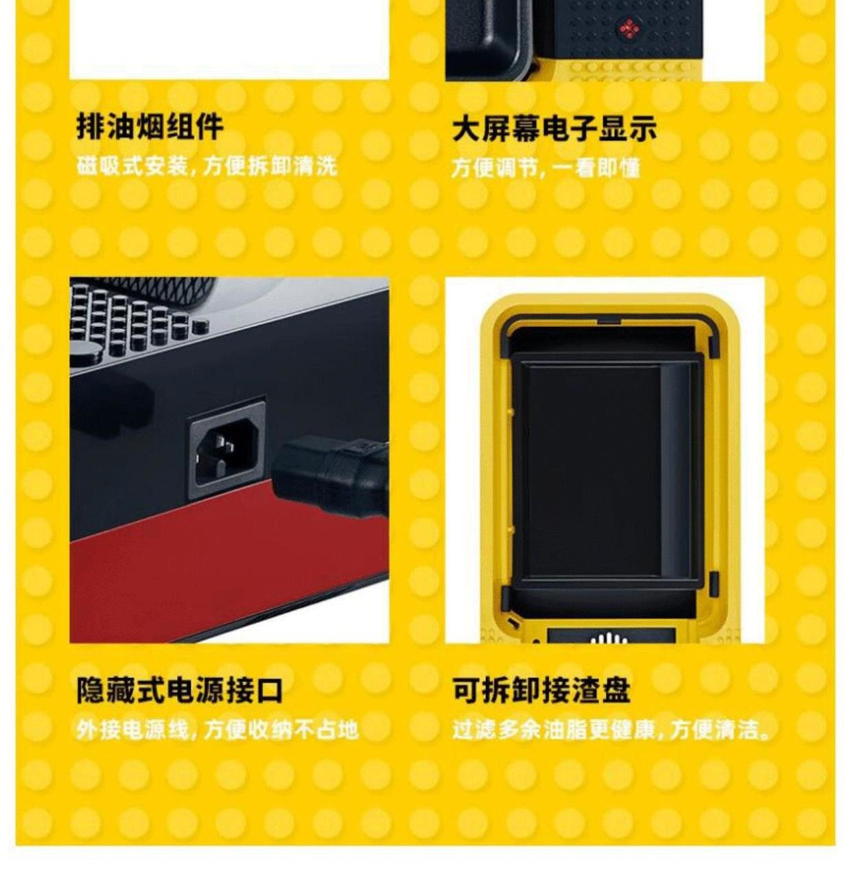 额定电压:220V~ 额定频率:50Hz 额定功率:1200W 深锅容积:2L 1、创新抽油烟机组件,解决油烟困扰 2、玩具拼装设计,全机可拆洗,简单有趣 3、花式厨艺,都能满足 4、五档控温,简易操作 5、温度到达,即可停止,不易糊锅 6、不粘食品级涂层,安全使用
