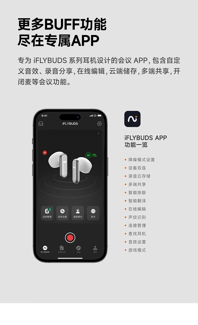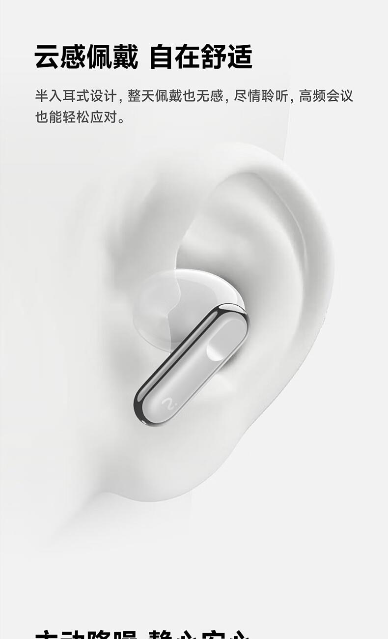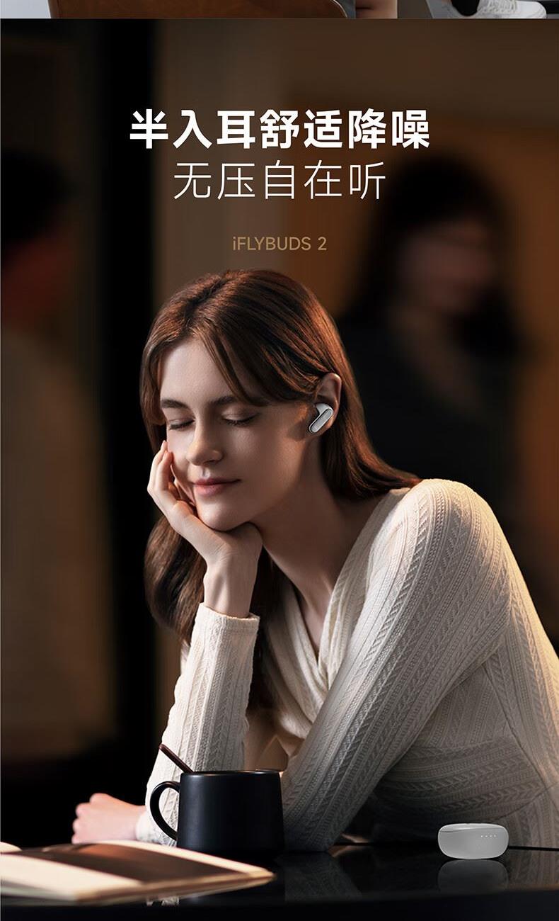讯飞录音降噪会议耳机,零压自在BUFF全开,半入耳友好体验,双耳零压 无感佩戴,舒适贴合耳道长时间高强度佩戴毫无压力同时不损失耳机震撼听感
