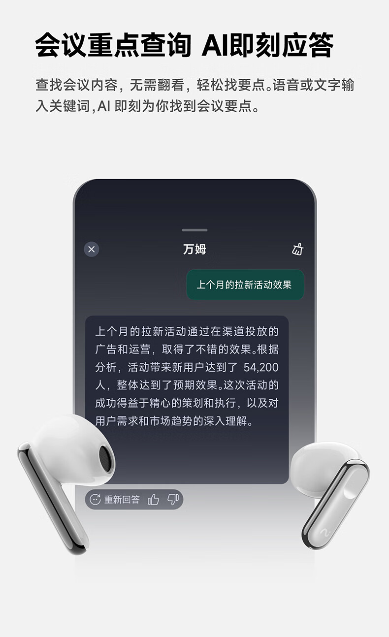3、AI即刻应答:查找会议内容,无需翻看,轻松找要点。语音或文字输入关键词,AI即刻为你找到会议要点。