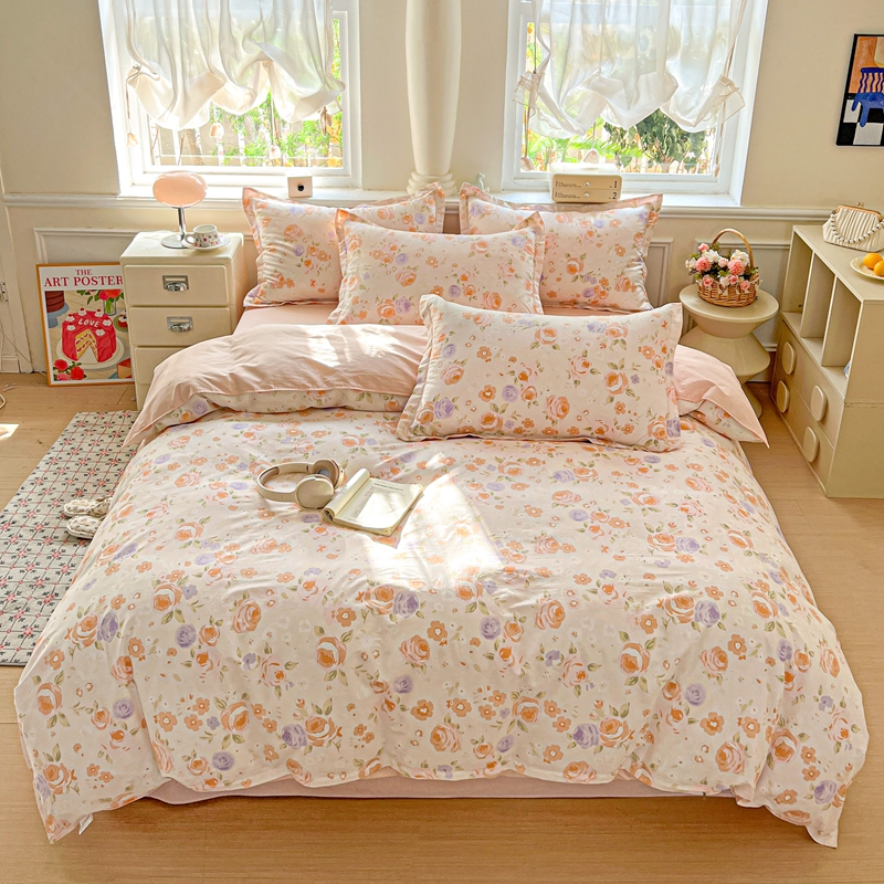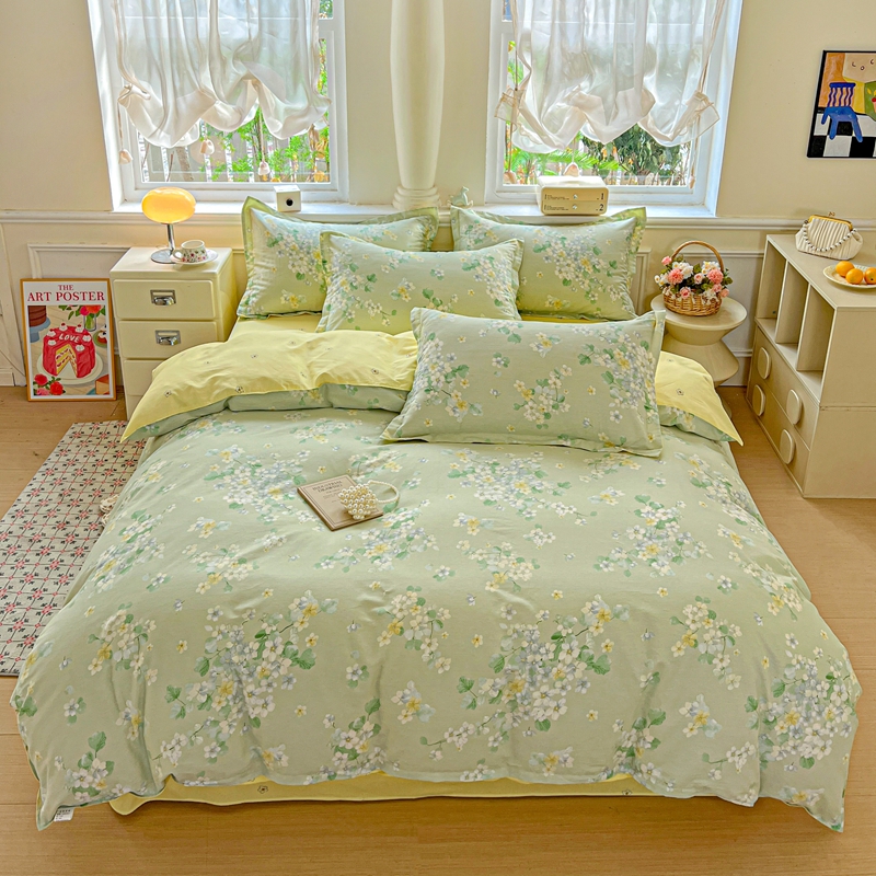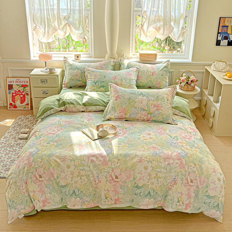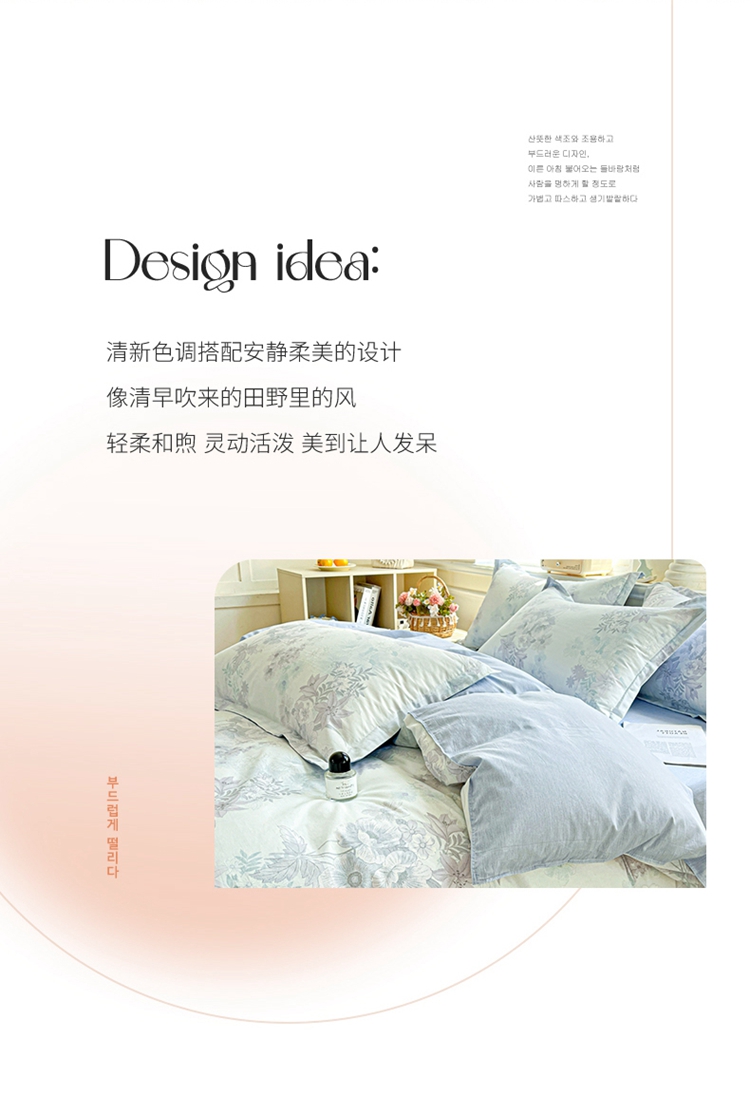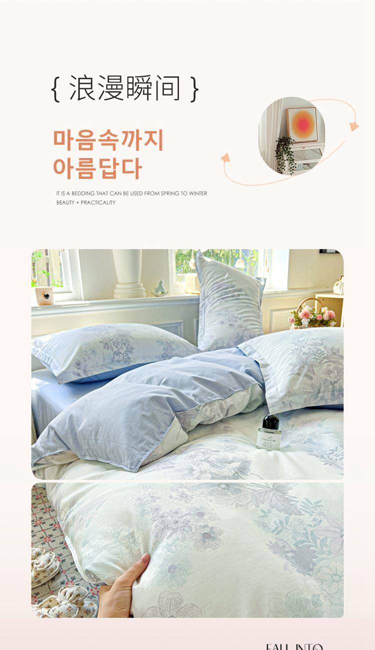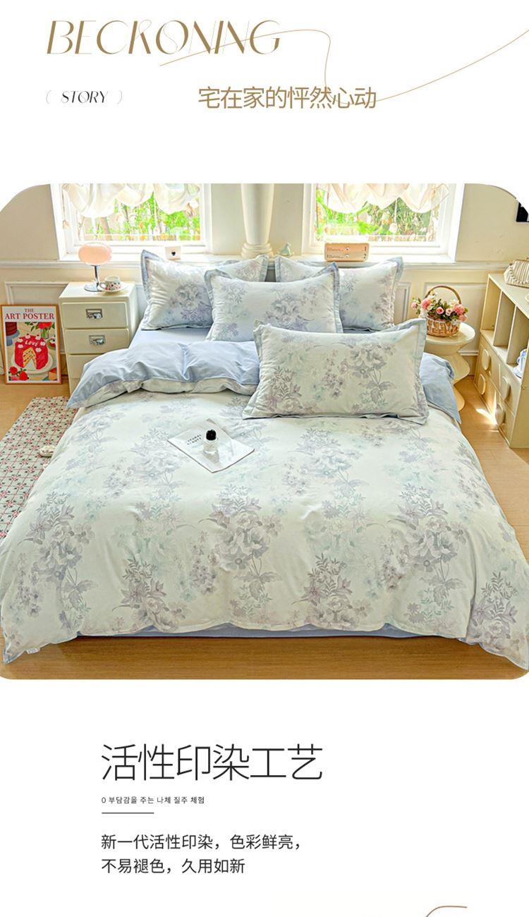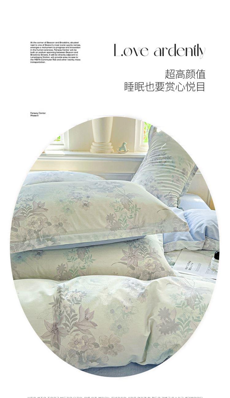 1:这一刻、陷入温柔悸动 全棉清新印花四件套 2:亲肤舒爽带给你0负担感的裸奔体验 3:甄选纤维柔长棉朵硕大的新疆棉花纤维挑剔是为了配得上骄傲的身体 尺寸:被套:200*230cm*1 床单:230*245cm*1 枕套:48*74cm*2 包装:彩盒