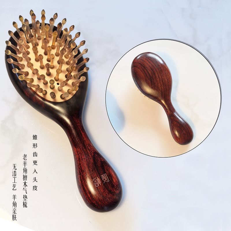 主要材质:老羊角、黄铜、檀木 气垫梳尺寸:160*60MM(宽处) 薰香尺寸:68*28MM 香罐尺寸:55*18MM(配香) 包装尺寸:193*193*65MM