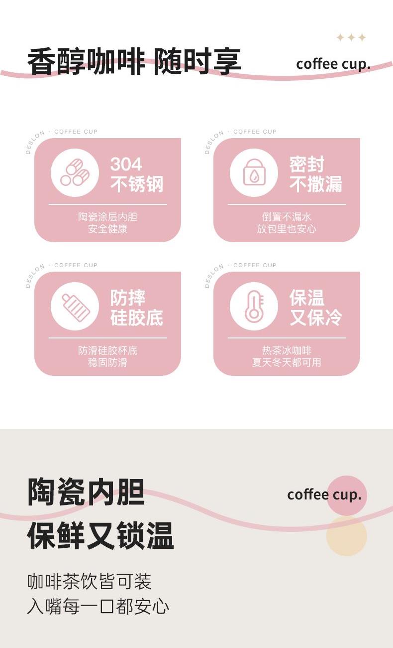 1. 杯身采用内外304不锈钢+陶瓷涂层内胆,无惧酸碱,隔绝茶水与不锈钢接触,不与茶水产生反应,疏水性,不留茶渍,易清洗,无残留;