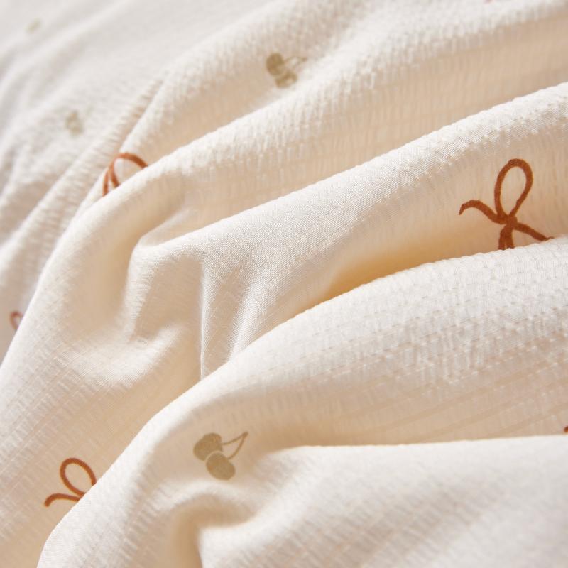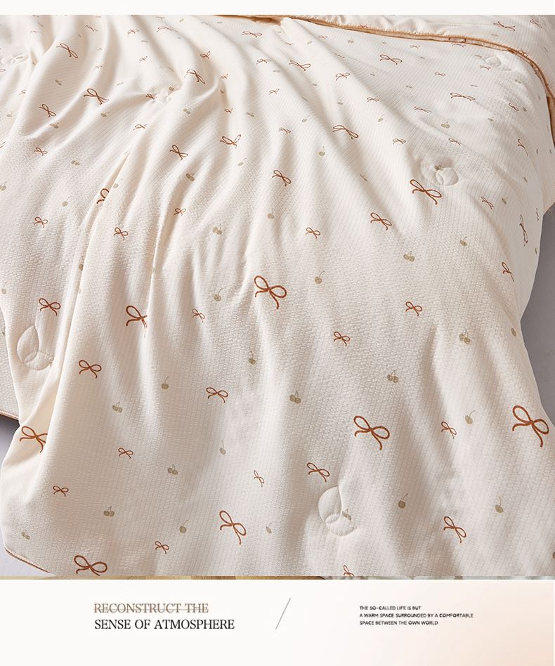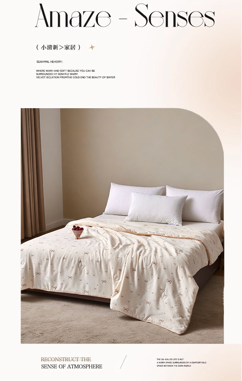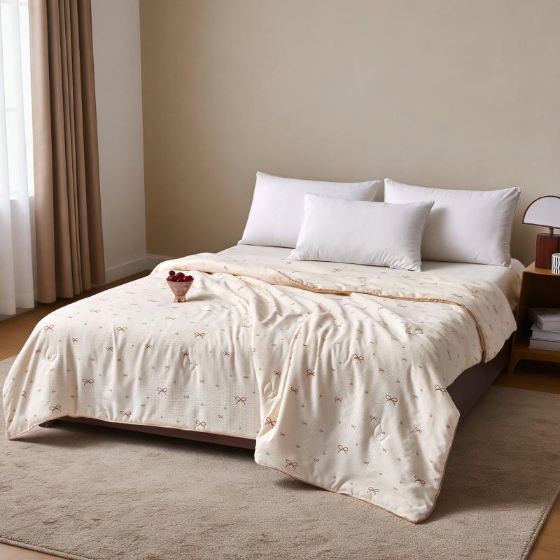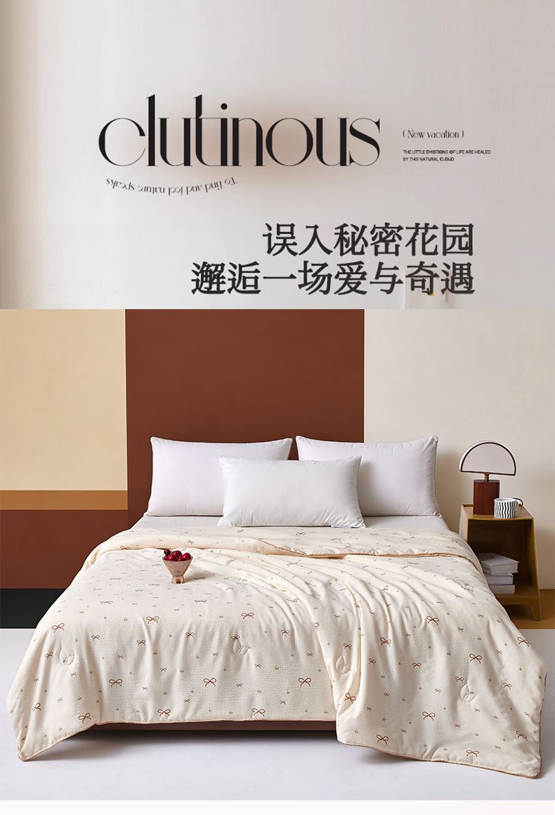 规格:200*230cm 面料:泡泡纱(聚酯纤维) 填充:羽丝棉+大豆纤维 填充克重:500g 执行标准:GB/T22796-2021 安全类别:GB18401-2010 B类 1.柔软泡泡纱面料,亲肤透气,千爽透气贴着身体,仿佛会呼吸,越睡越上瘾。软软糯糯很亲肤,织造紧密,手感柔软非湿排热内芯,不再闷湿燥热,我们的泡泡纱夏被,内部形成多孔的中空结构,加速排出湿气和热量。