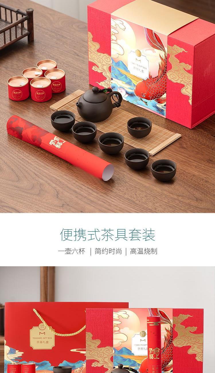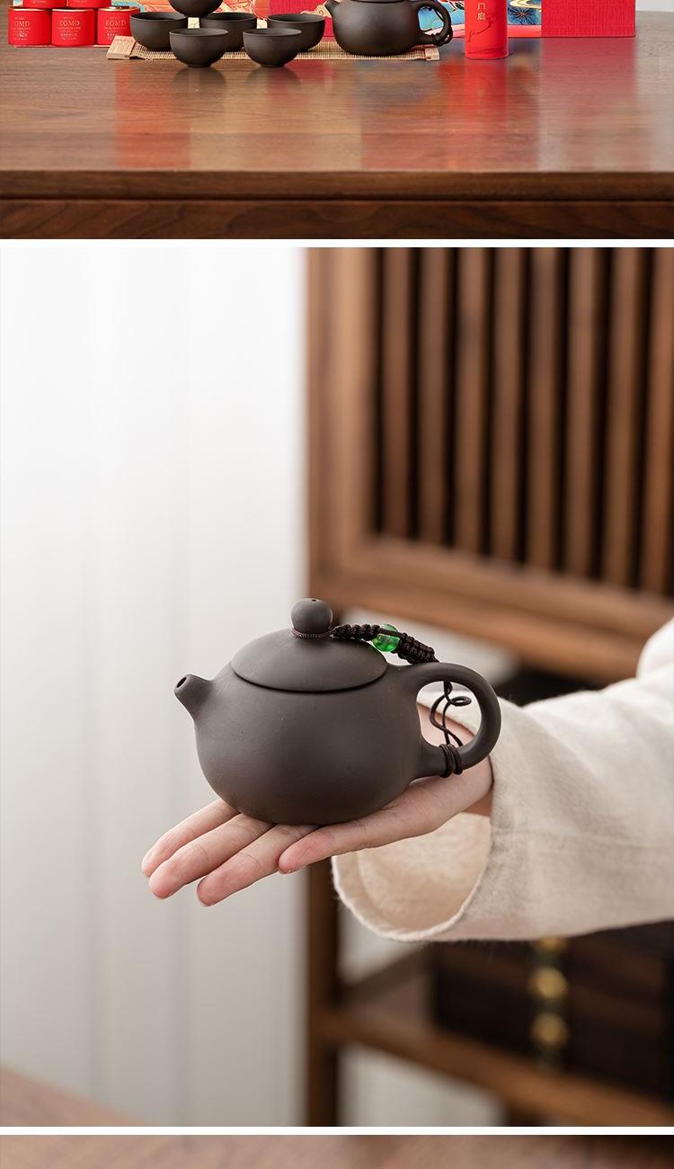 产品配置:一壶六杯、小罐装茶*5、 对联*1、、礼盒、手提袋 材质:紫砂泥 礼盒尺寸:310×120×235mm 产品卖点: 采用紫砂泥材质打造而成,经典西施壶造型搭配小玉珠挂饰点缀,提升产品质感;同品质、同配置,低价;