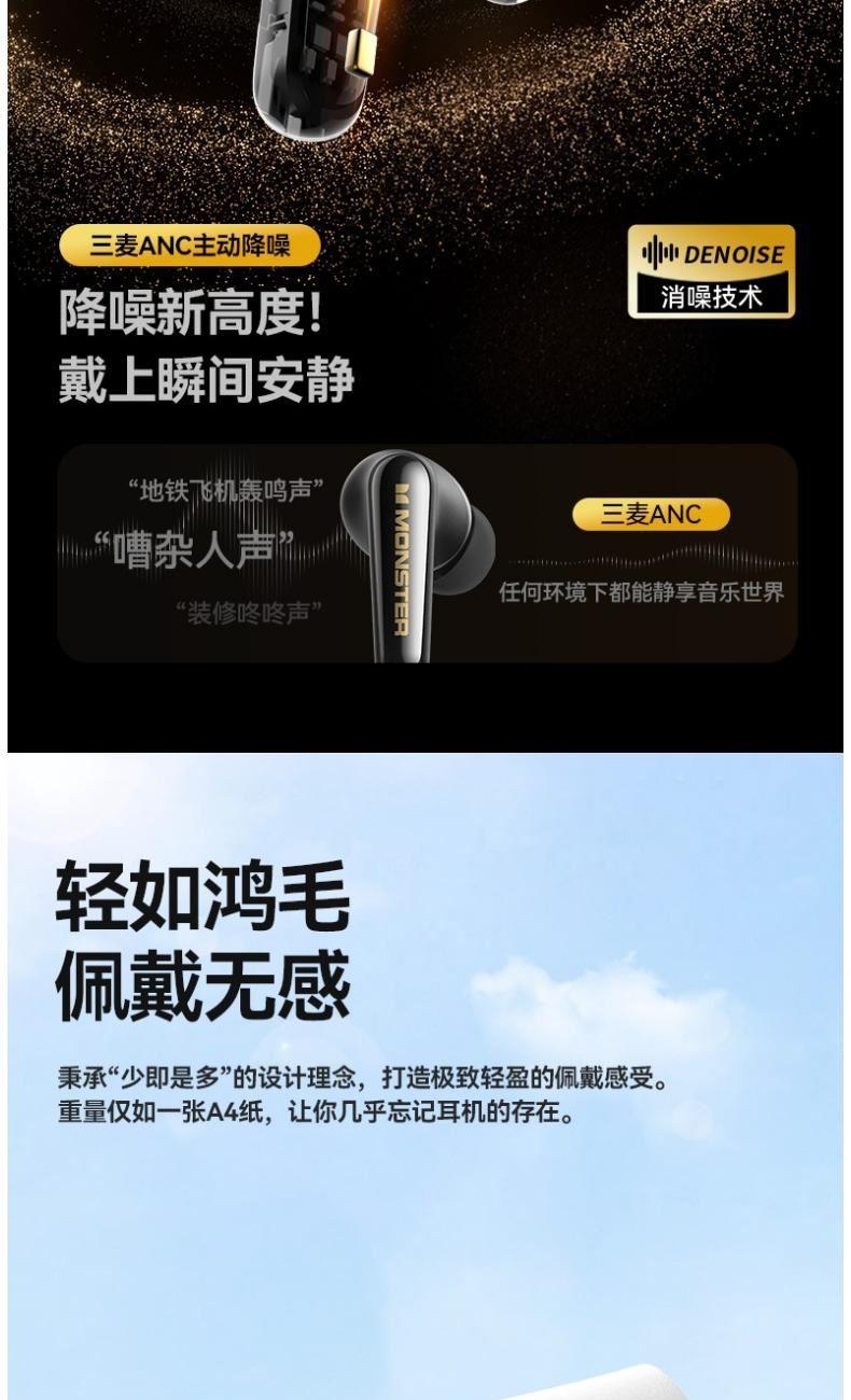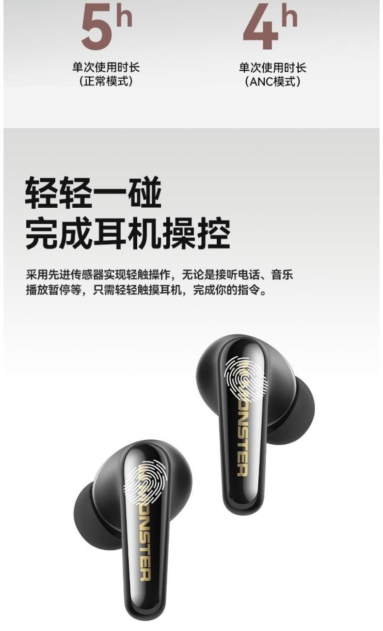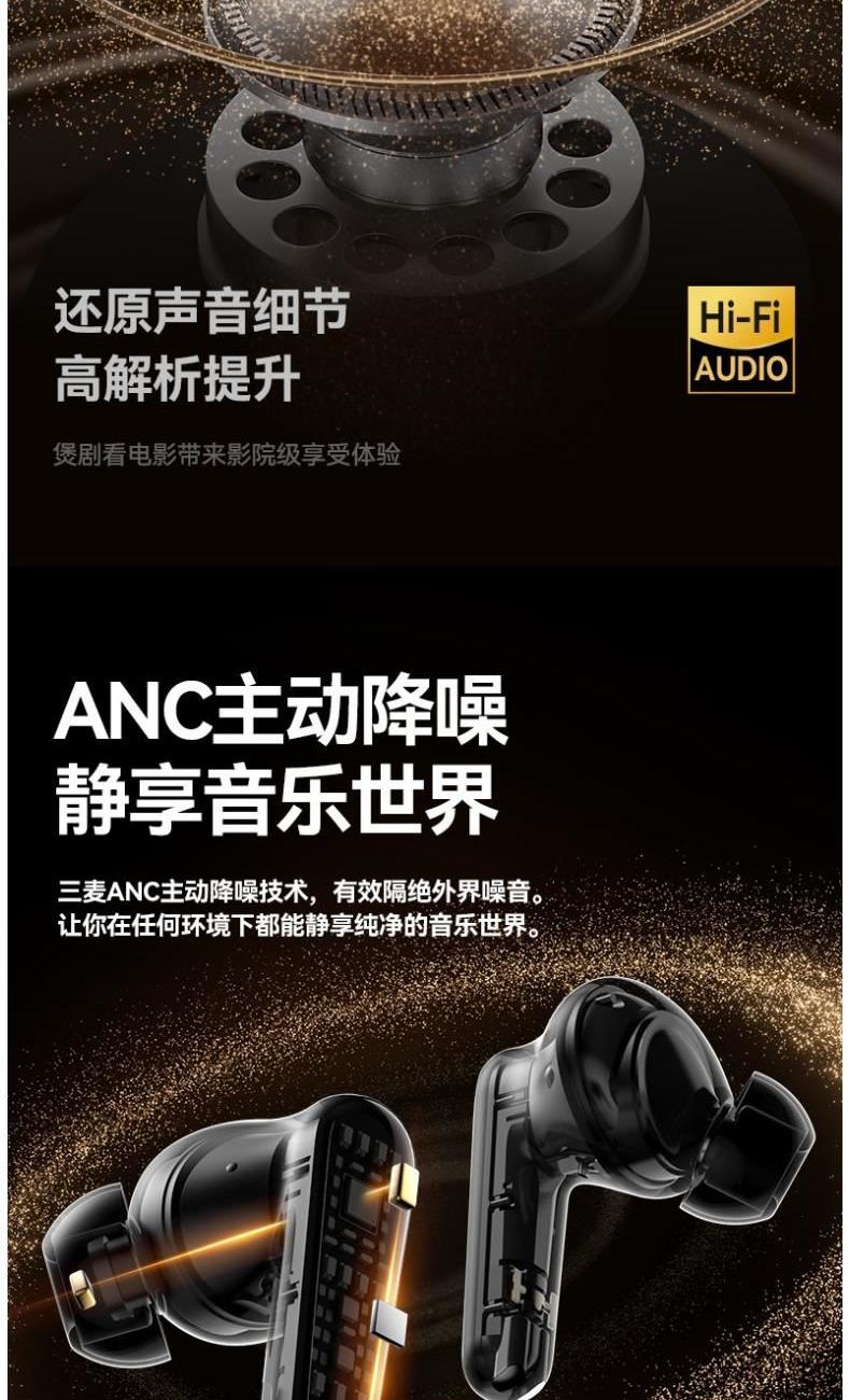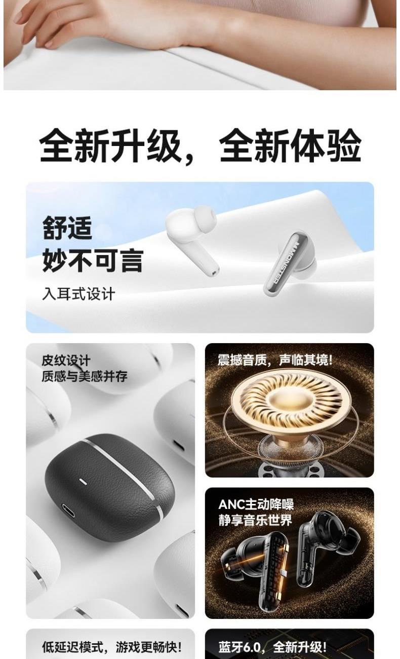 • ANC主动降噪,静享音乐世界,低延迟模式游戏更畅快