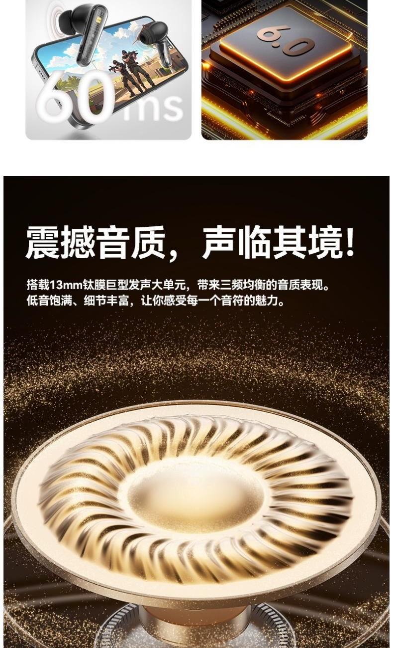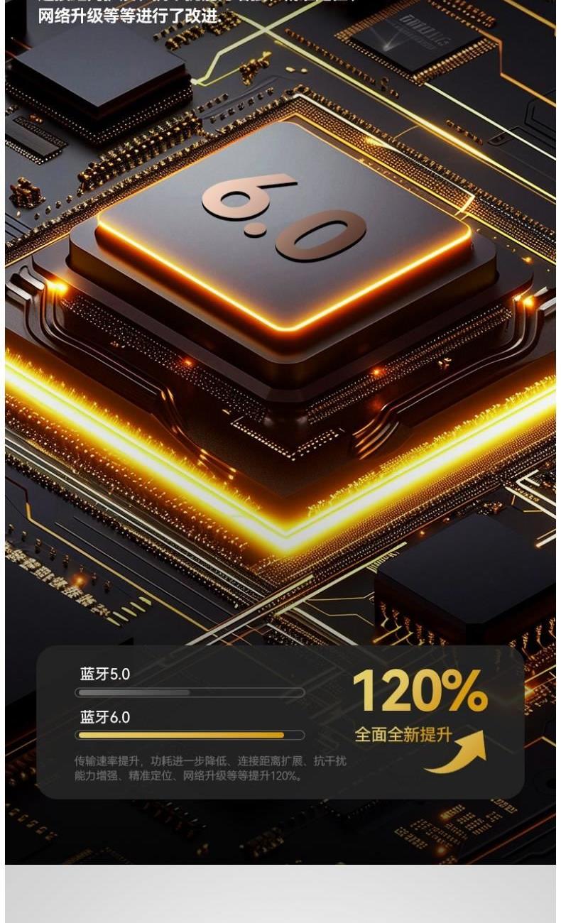 • 蓝牙6.0,高能内“芯”时刻畅享,传输快,功耗低