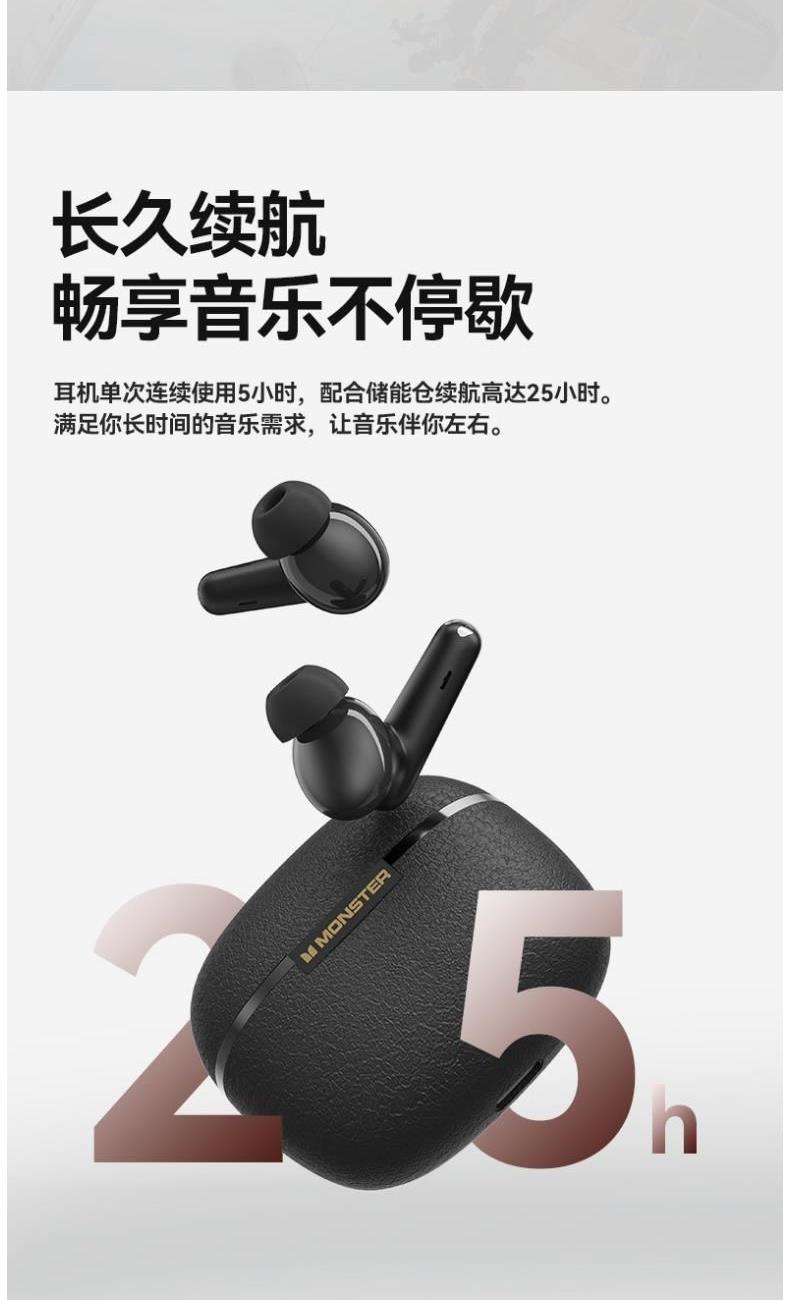 • 5h单次续航,25h充电舱续航,告别电量焦虑