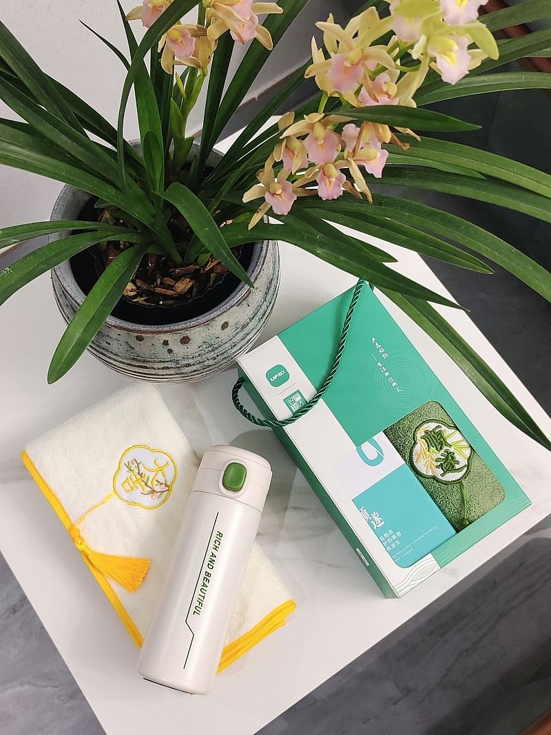 型号: A13B11 产品内容 1、 微米国风系列毛巾×1 微米纱 平方克重350克 规格35*75CM 2、 靓彩保温杯×1 304内胆 PP杯盖 420毫升容量 外盒: 25×14×7cm 炫彩保温杯设计融入祝福 外观和品质同在 国风微米毛巾融入祝福理念 面料升级 精工刺绣 为生活添彩