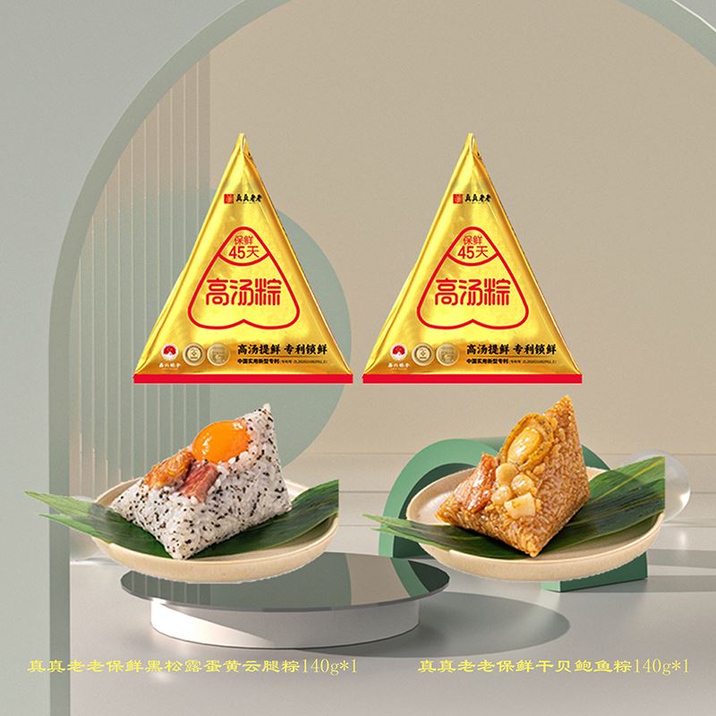 真真老老保鲜黑松露蛋黄云腿粽*1 真真老老真真老老保鲜干贝鲍鱼粽*1: 140g /包,保质期45天,包装尺寸14.5*21cm