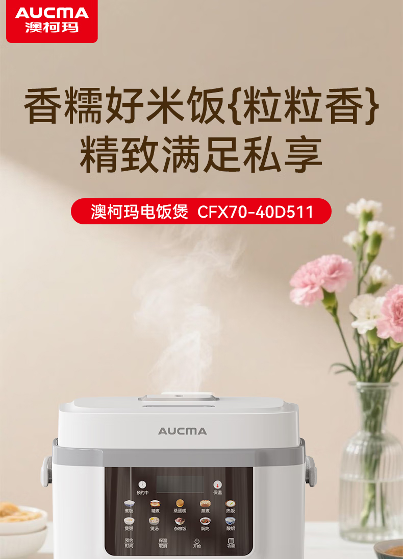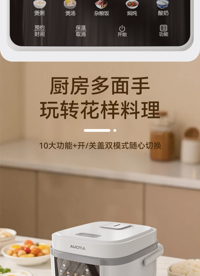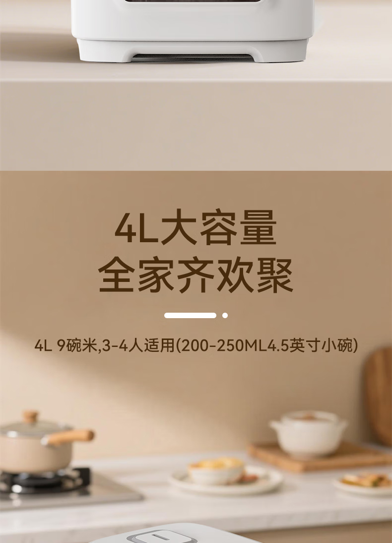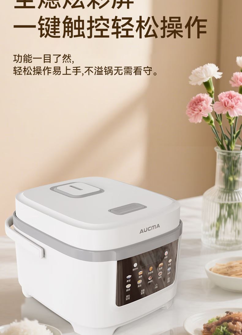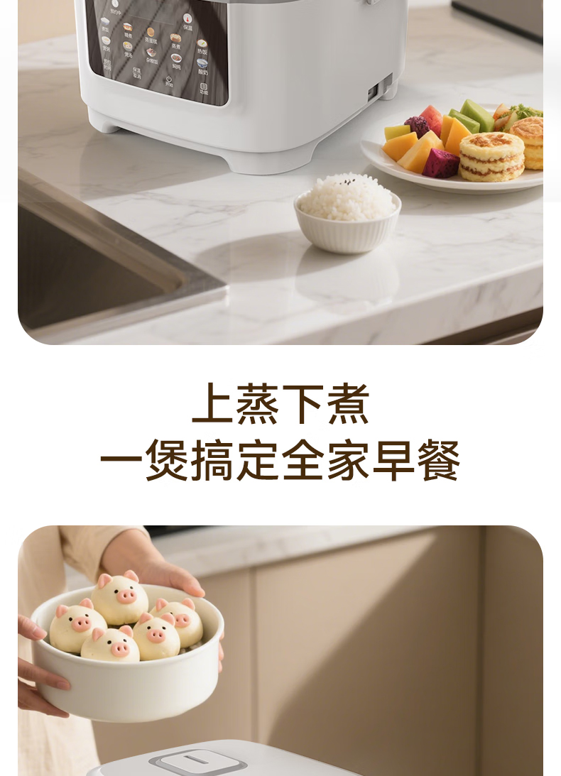 适用人数:3-4人 水性纳米不沾涂层 内胆材质:铝合金 容量:4L 电源线长:0.85m 额定功率:700W 全息炫彩屏,一键触控轻松操作 蒸,涮,煮一机多能 十大功能,双模式随心切换 特色网红蛋糕功能 智能控温系统,还原古法柴火饭