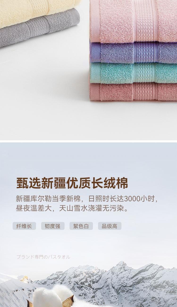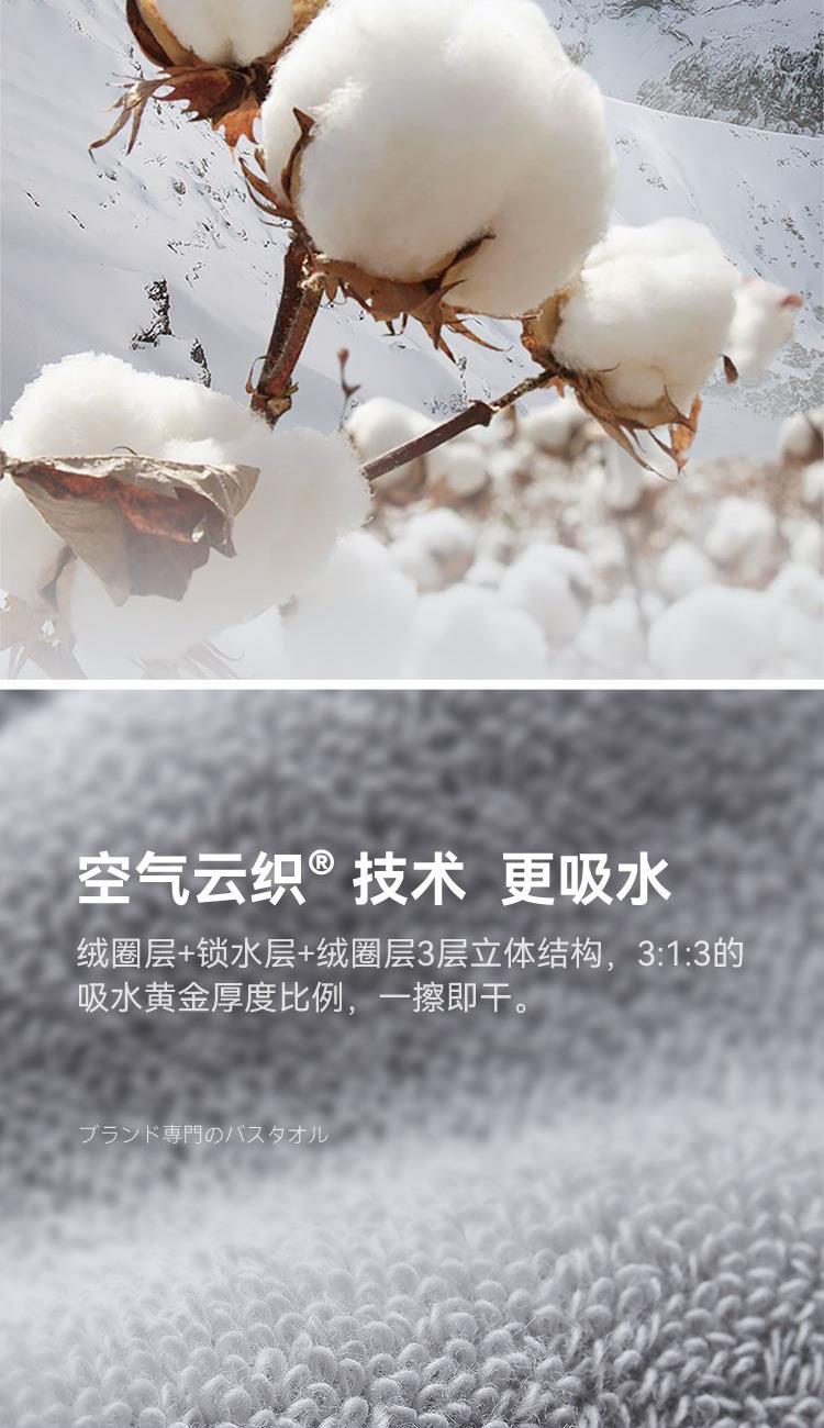 A类 · 婴幼儿可用标准,通过瑞士SGS机构检测认证 安全环保:无甲醛、无芳香胺、零添加荧光剂,PH安全值 优选新疆长绒棉,经过11道精梳工艺,精制而成 2倍吸水,3倍耐用,6色可选,不脱色不掉毛,娇嫩肌肤专用 包装采用进口食品级材质,可降解回收;防潮防尘,使用便捷 日本原创设计,東川株式会社专研空气云织®巾类织造技术