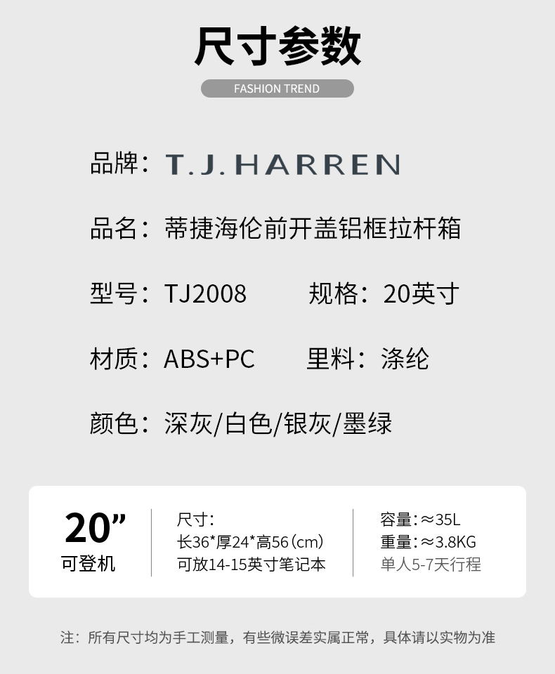 蒂捷海伦前开盖铝框拉杆箱20英寸TJ2008