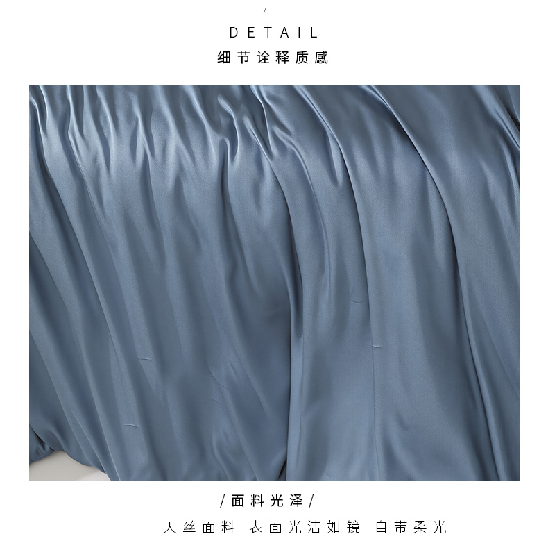 被套:200*230cm 床单:230*250cm 枕套:48*74cm*2 面料:兰精天丝 产品包装:精美礼盒 产品特点: 兰精天丝面料似乎注定就为盛夏而生,清爽飘逸垂坠丝般的光泽具有湿气管理功能,可自然地吸收和释放人体湿气亲和肌肤,提供持久的舒适感受,持久柔软、抑制细菌滋生色泽稳定持久亮丽即使经过多次洗涤也不易褪色。