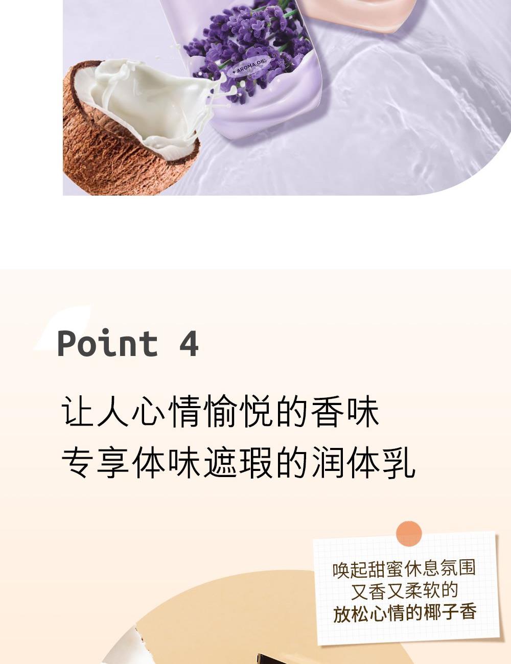 香水级香氛(馥郁香气 丝丝索饶),产品功效:清洁皮肤,滋润美肌,留香更长,植物精油成分,细致渗透力,肌肤易吸收,打造润泽美肌。 润体乳:韩国进口,蕴含植物油成分:油橄榄果油+椰子油,不黏腻的,快速被肌肤吸收的水润感