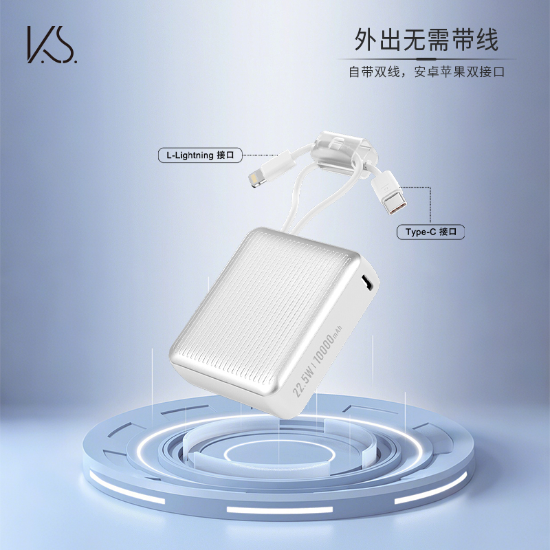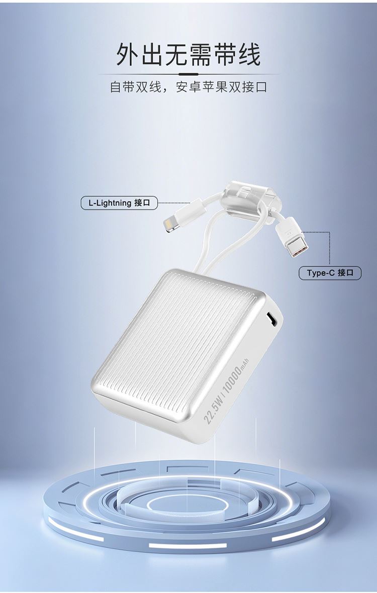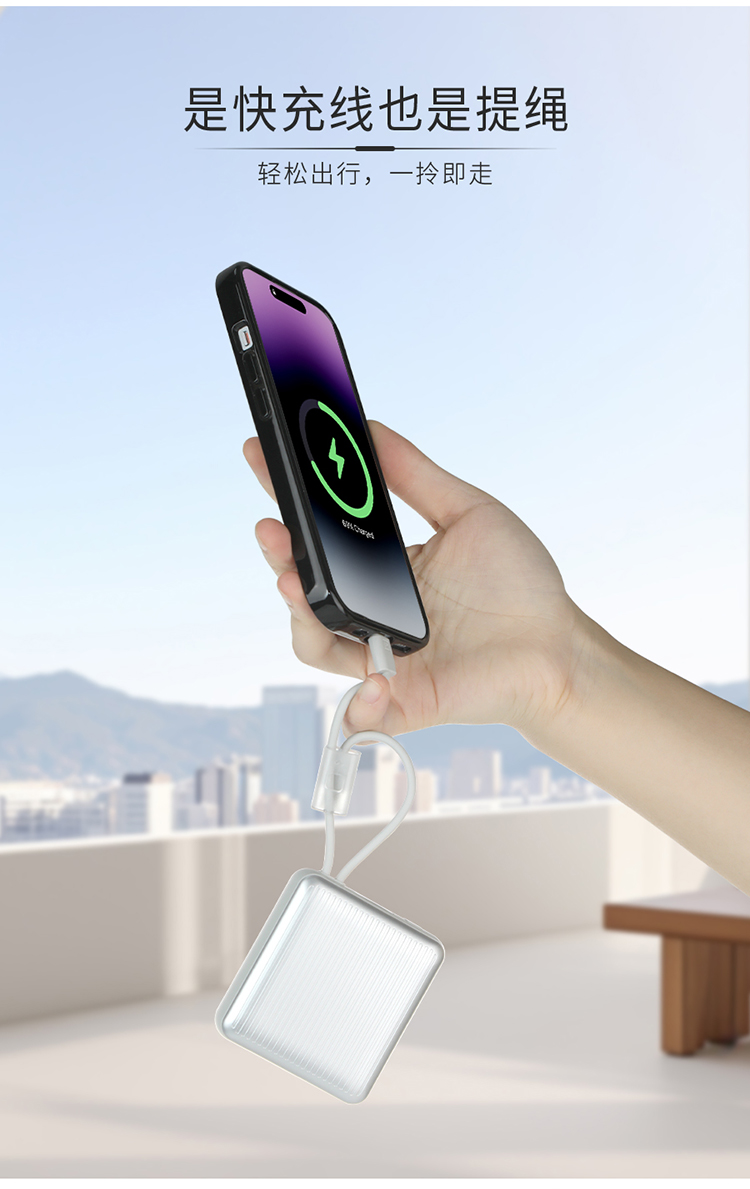 4.自带双线极速快充: Lightning + Type-C 双线一体,即插即充,高效回血。