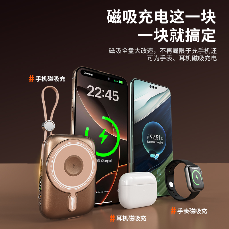 奥苏米3C认证商务磁吸无线充快充移动电源