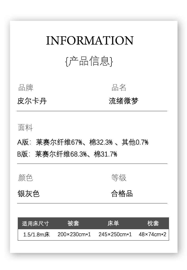 皮尔卡丹60支天丝四件套流绪微梦-银灰PCAZ-26039