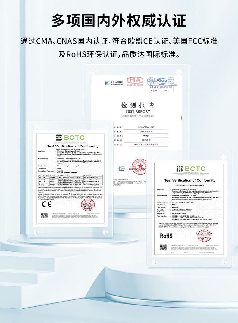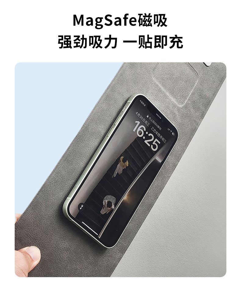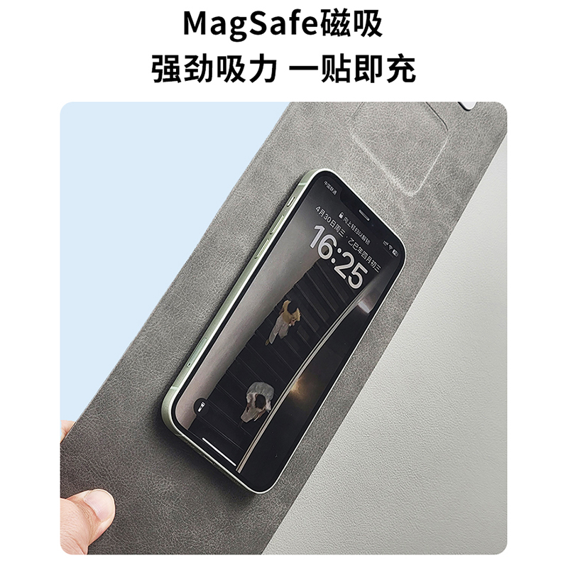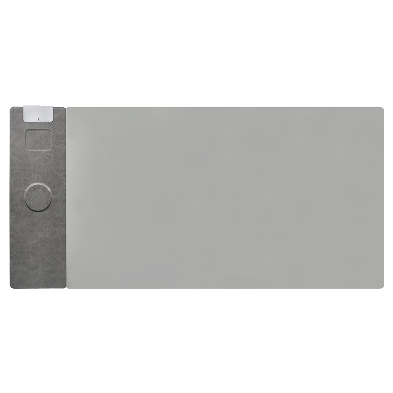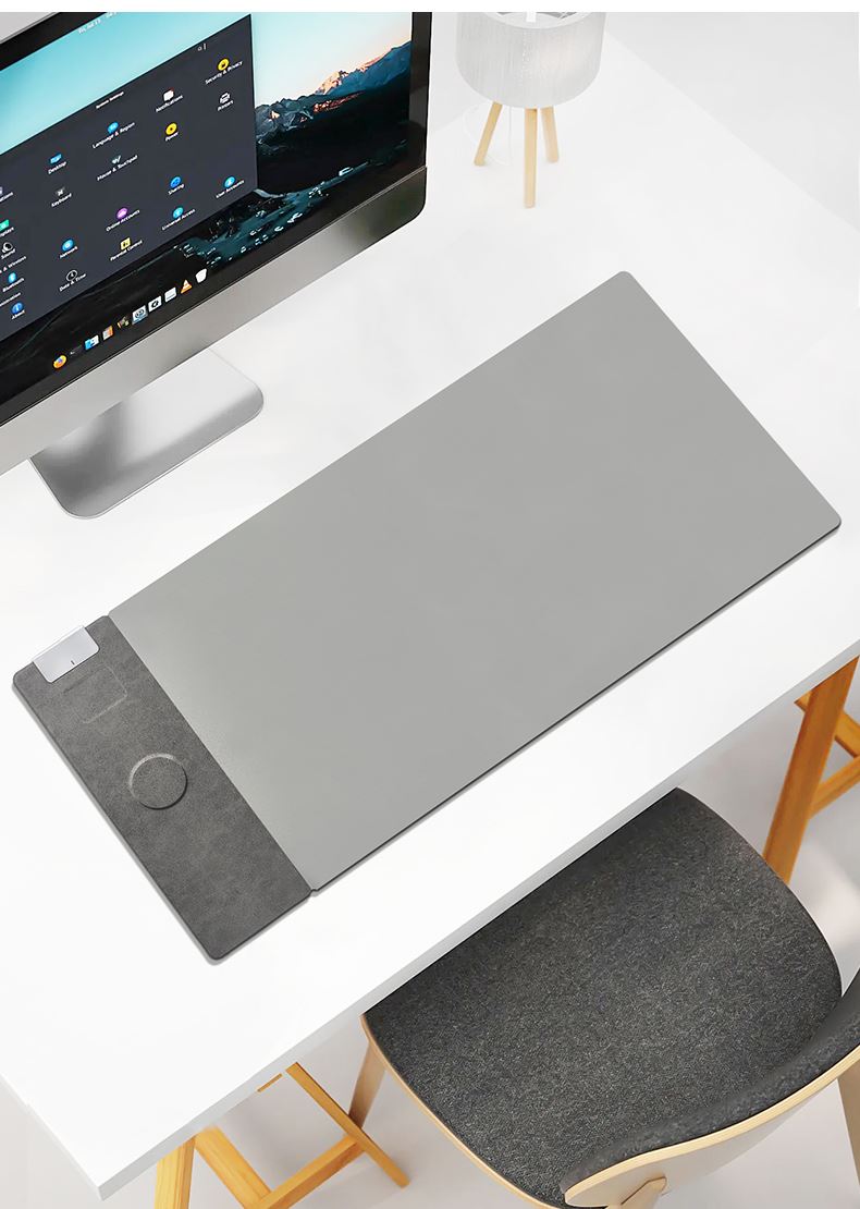 型号:WM-08 材质工艺:肤感防滑PU 手机功率:15W/10W/7.5W/5W 耳机功率:5W 传输距离:≤5mm 产品尺寸:800x388x2mm 产品颜色:灰色 手机/耳机二合一无线充 MagSafe磁吸无线充电,一触即充,让充电变得如此简单 15W(Max)无线快充:智能匹配手机,自动调节电流,避免杂乱无章的线,让充电更便捷整洁。 超大尺寸:388*800mm 的大规格,满足鼠标自由移动,摆脱束缚。 优质皮纹面料:触感细腻,亲肤顺滑,带来舒适体验。 多场景适用:适用于办公桌、书桌、电脑桌、茶桌等各类场景。 ​多功能用途:鼠标垫,​桌垫、印章垫、练字垫(增强纸张与笔的摩擦力,减少滑笔,提升控笔稳定性,让书写更美观)等功能于一体,简化桌面布置 桌垫下方可收纳草稿纸,充分利用空间。