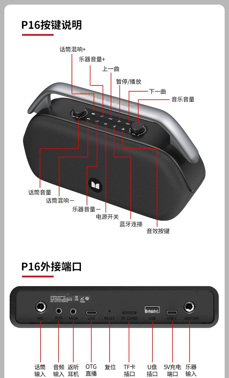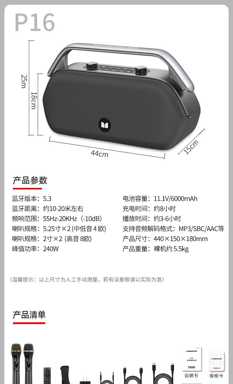魔声(MONSTER)P16户外K歌蓝牙音响MS62107 魔声(MONSTER)P16户外K歌蓝牙音响MS62107