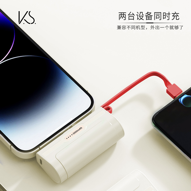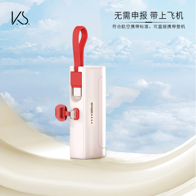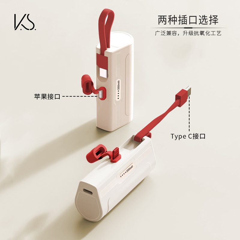•材质:ABS+PC+锂电池 •规格:5000 mAh额定容量:3250mAh 输入-Type-C:5V2A输出-Lightning:5V2A输出-Type-C:5V2A •包装:彩盒(两款包装可选) 1.5000毫安容量,便携,仅口红大小,可上飞机。 2.自带数据线,挂绳设计,两种插口选择,直插随充。 3.过充、断电、过热、过放、过压、磁场六重保护,进口电芯,让充电更安心。