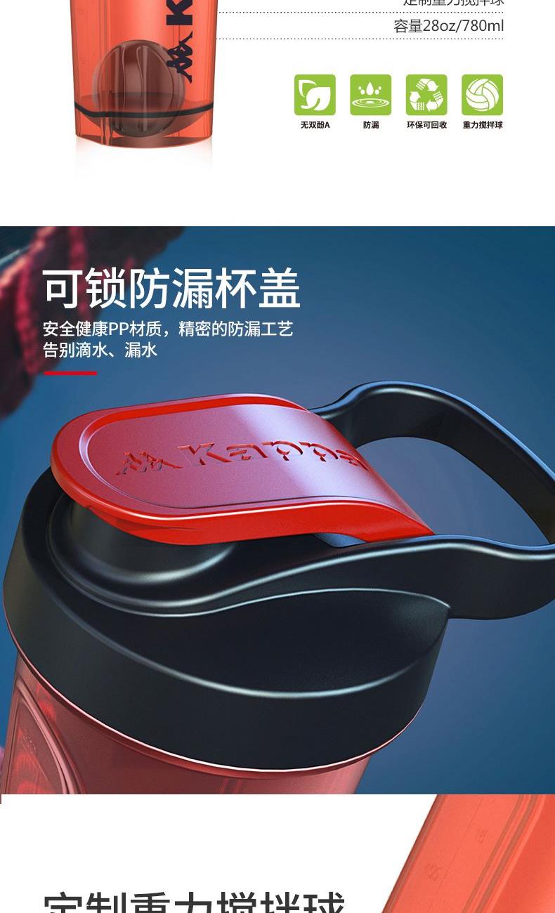 材质: 食品级聚丙烯(PP) 尺寸:10*21.5cm 容量:28OZ/780ML 颜色:橙色 采用进口PP材料,不含邻苯二甲酸盐,无双酚A,耐高温性(≤90℃)。设计可锁防漏盖,可用洗碗机清洗,安全健康PP材质,精密的防漏工艺告别滴水、漏水。定制重力搅拌球,圆弧底和重力摇摇球的独特设计,更易搅拌,更易清洗,可以让您顺畅的混合各种饮用蛋白粉,高粘度饮料,容量28oz/780ml