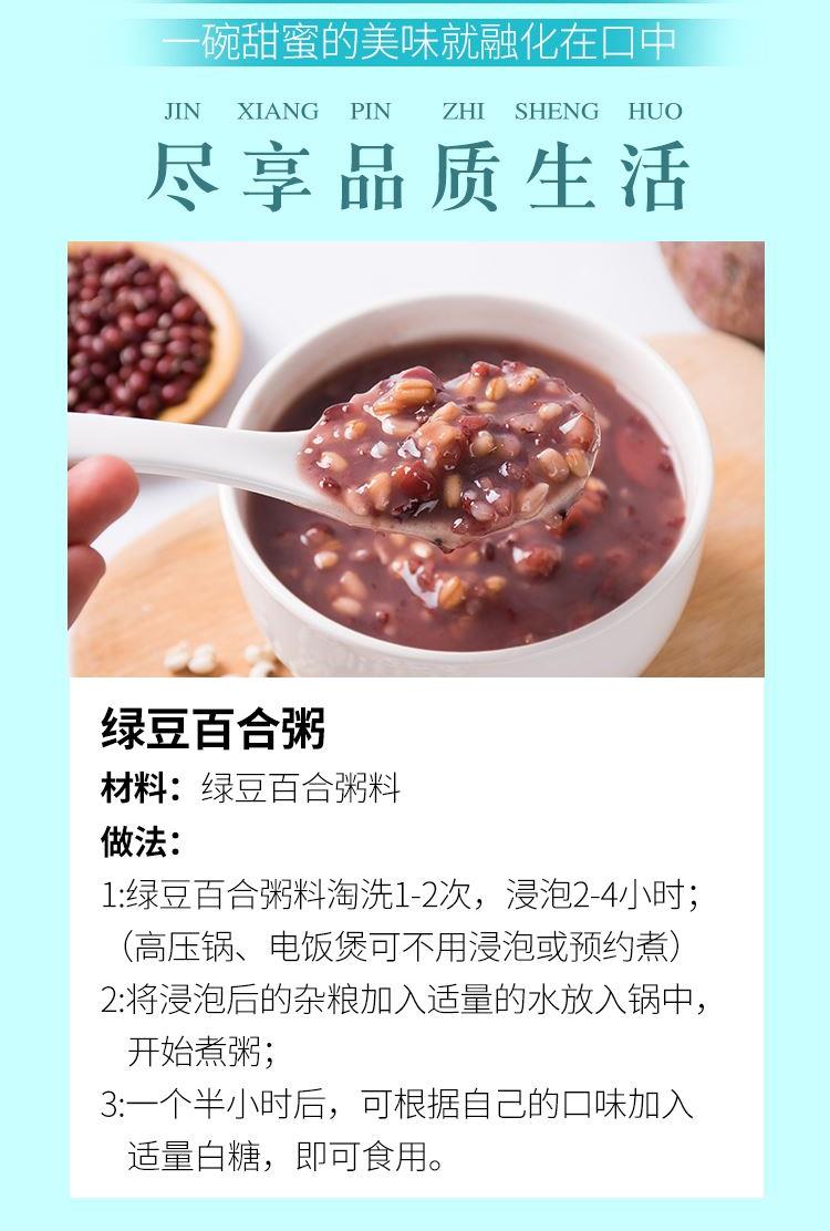 产地:湖北武汉 保质期:365天 净含量:1050g 生产日期:见外箱打印处 礼盒内含产品明细: 绿豆百合粥料150g、糙米莲子粥料150g、 红豆薏米粥料150g、紫薯黑米粥料150g、 燕麦小米粥料150g、八宝粥料150g*2
