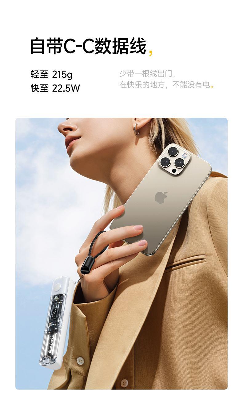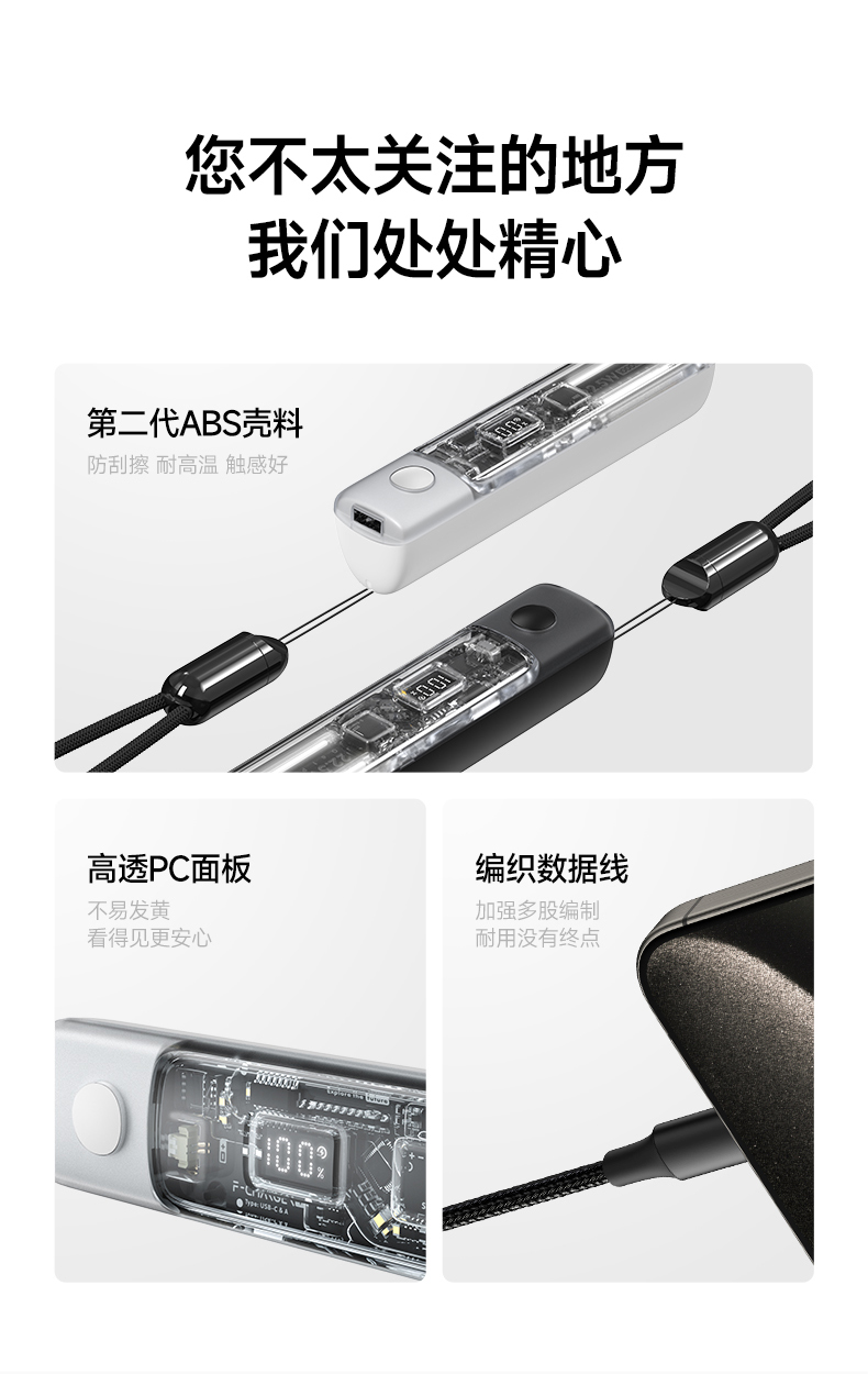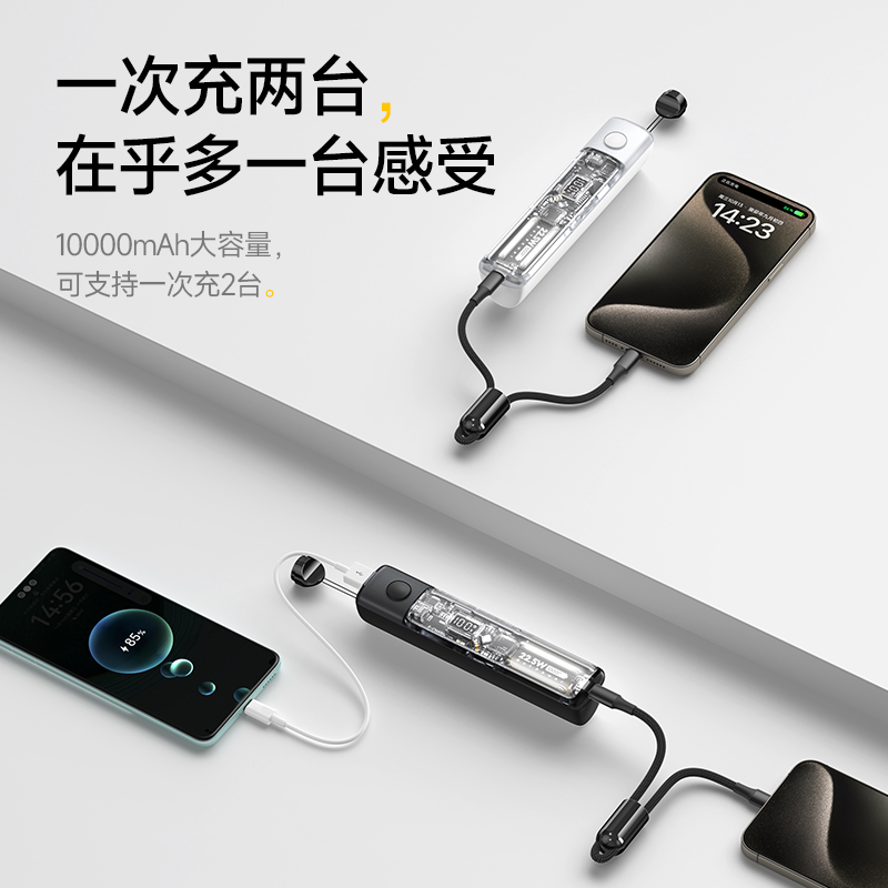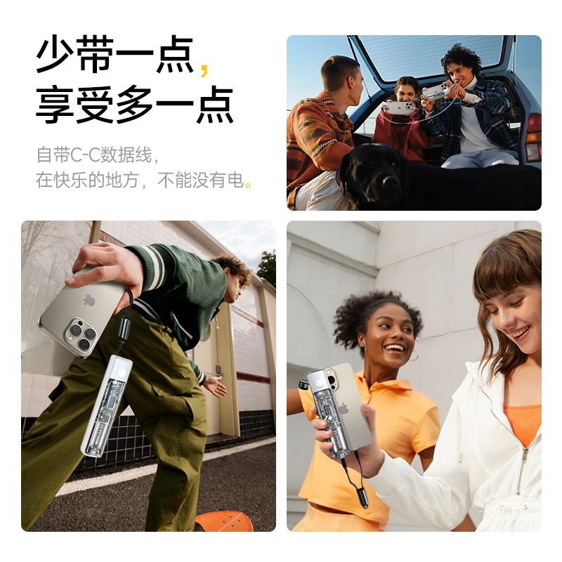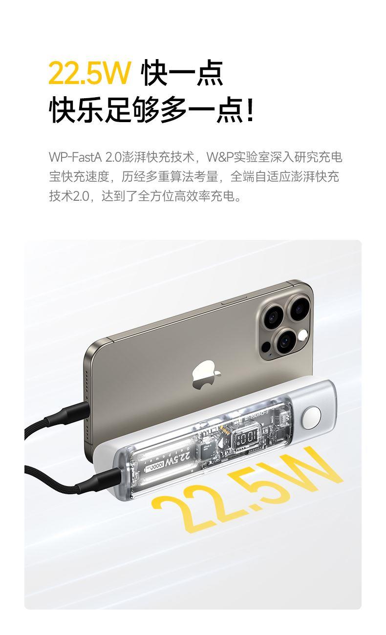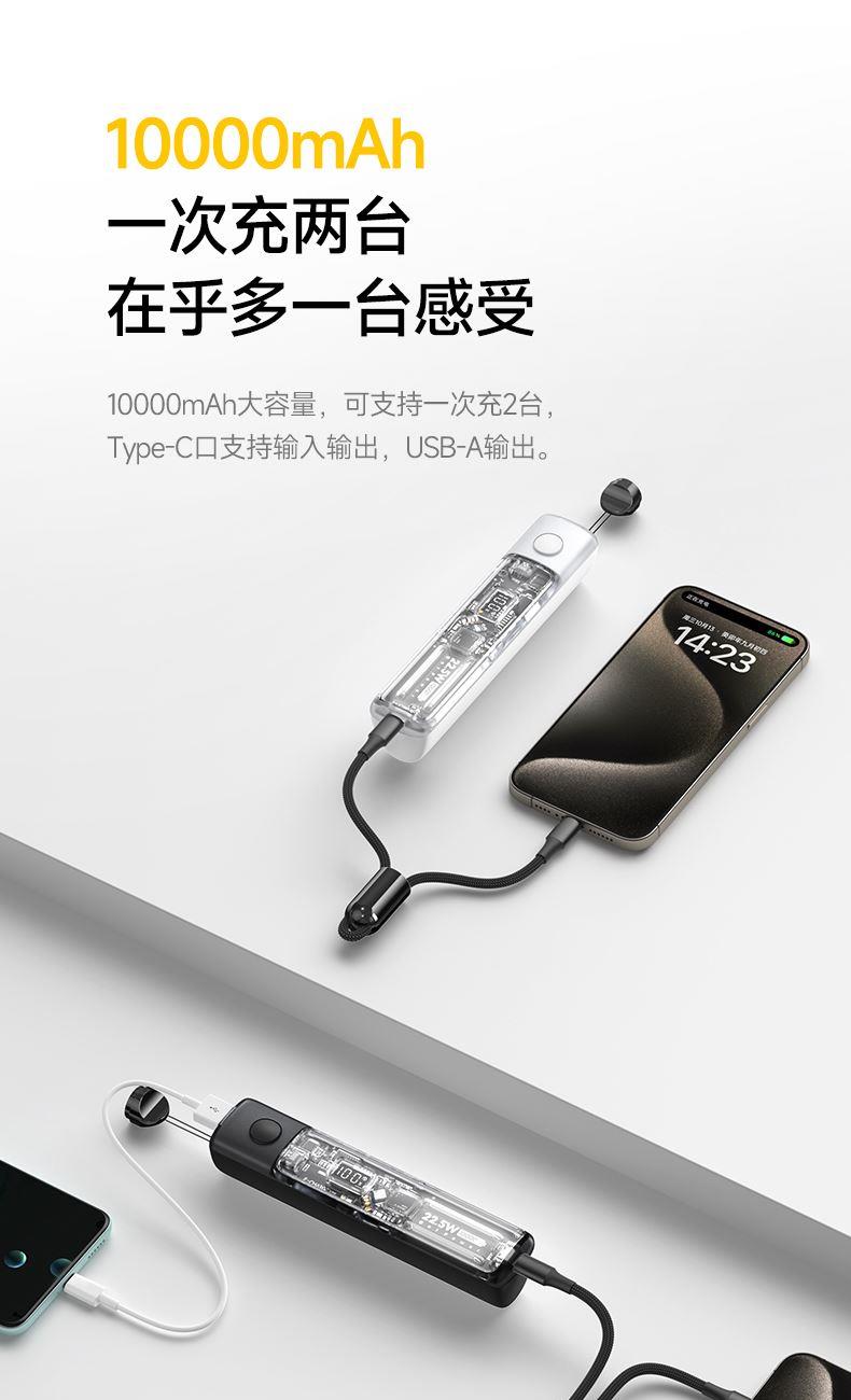 产品型号:SP010-C 产品尺寸:153x30x33mm 产品重量:约215g 22.5W快充,自带TC线+TC口+USB口; 创新磁吸矩阵,兼容苹果15/16-安卓,三设备同时充; LED数字屏实时显示电量; 隐藏式自带线+实验应急灯光,满足多样场景; 看演唱会,一秒秒变打call棒; 10000mAh电芯,满足全天差旅需求。