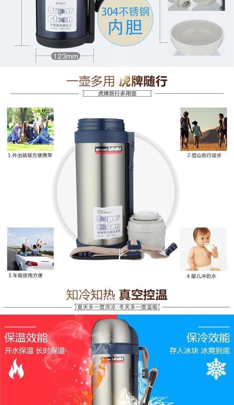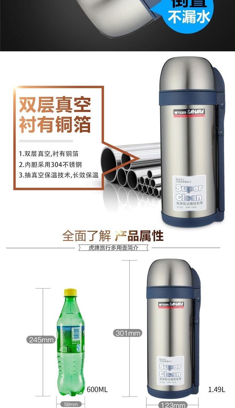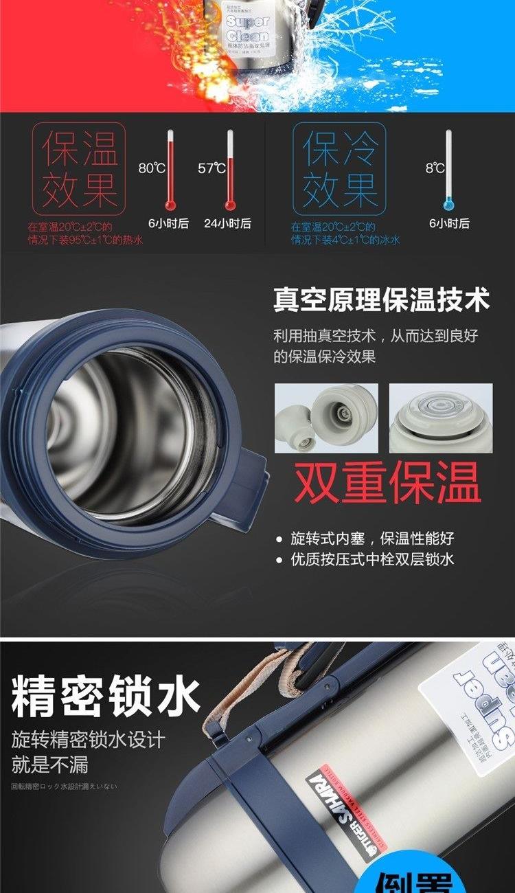 颜色:不锈钢色,星光蓝 容量:1.5L 材质:304不锈钢 尺寸:30.1*12.3cm 重量:1.16kg 保温效果:6小时80度以上,保冷6小时8度以下 广口设计,轻松清洗; 折叠提手,携带方便; 不易划伤,防止凹陷; 建议背带,方便携带;