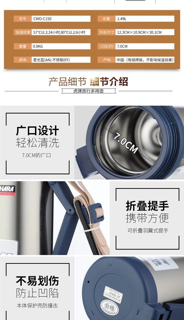 虎牌不锈钢真空运动保温壶CWO-C1501.5L